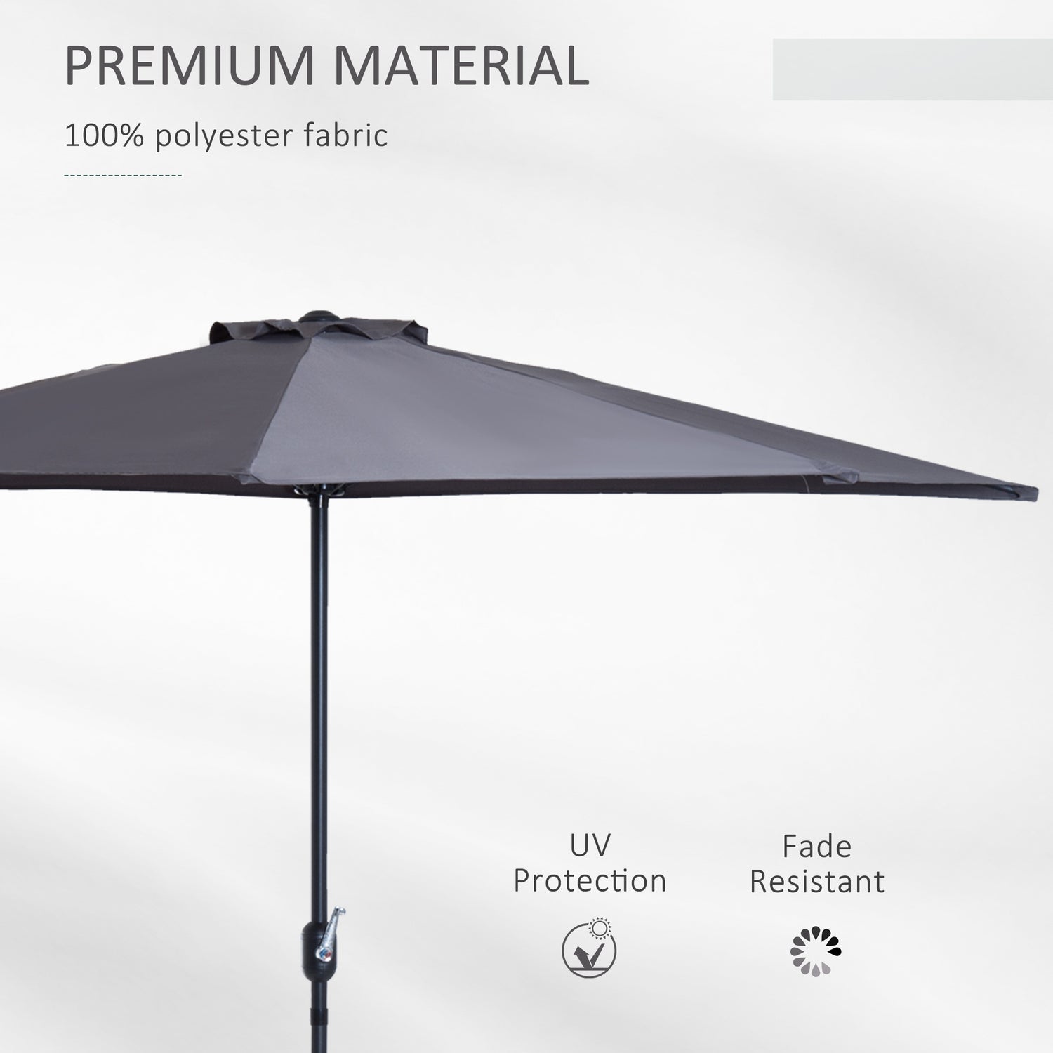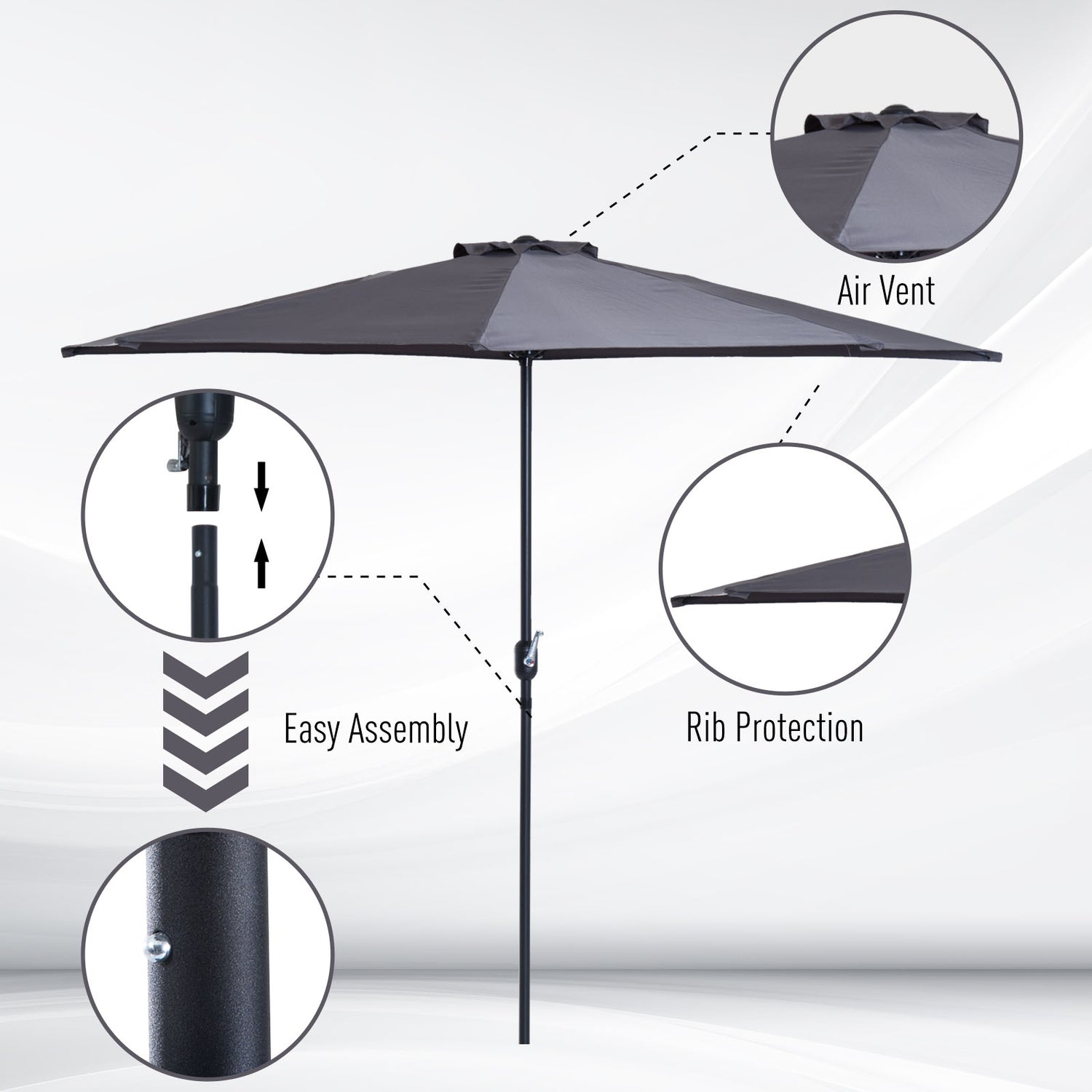 Outsunny 3 m Half Round Umbrella Parasol-Grey