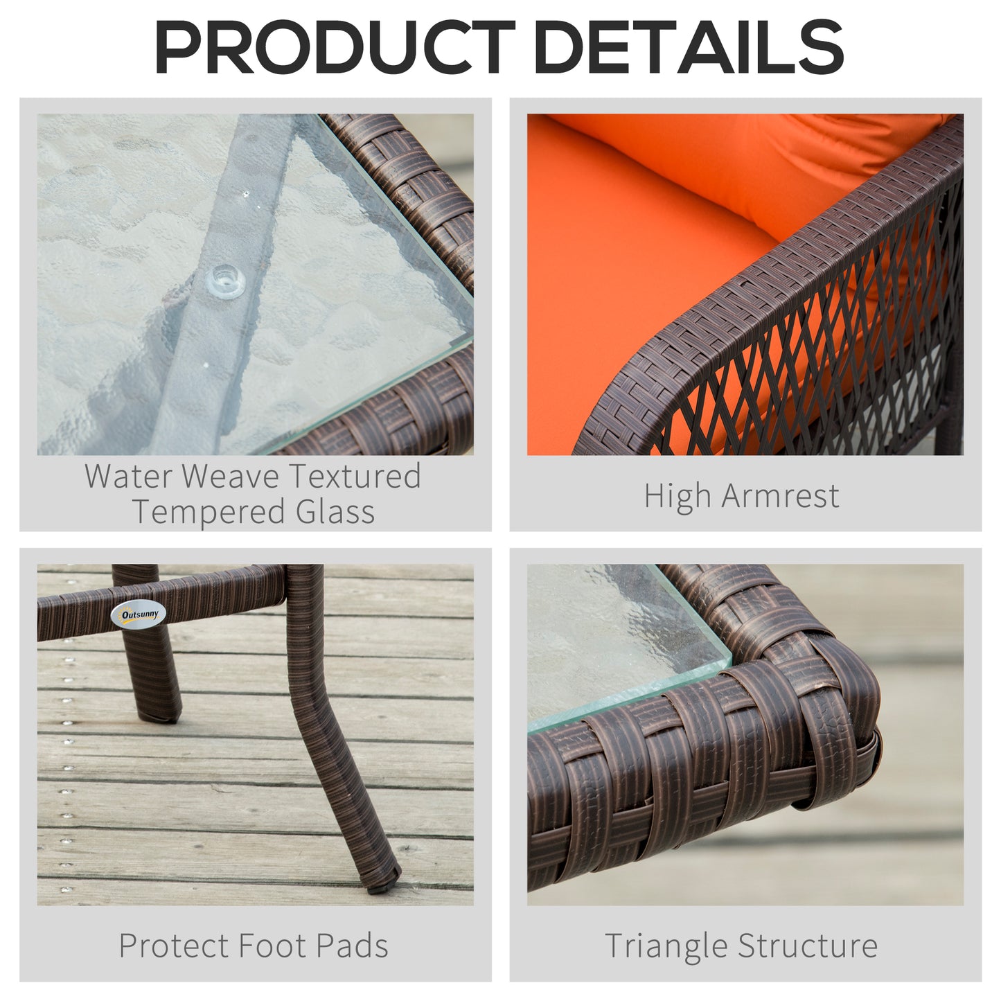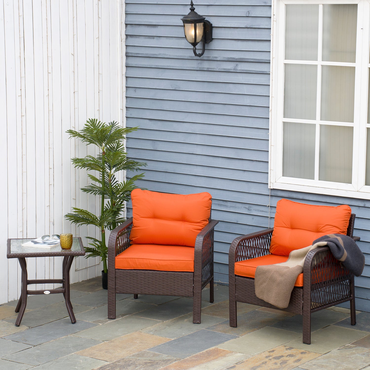 Outsunny 3 Pieces Patio PE Rattan Bistro Set, Outdoor Wicker Coffee Table Armrest Chairs Thick Padded Conversation Furniture w/ Cushion for Garden, Backyard, Porch, Orange