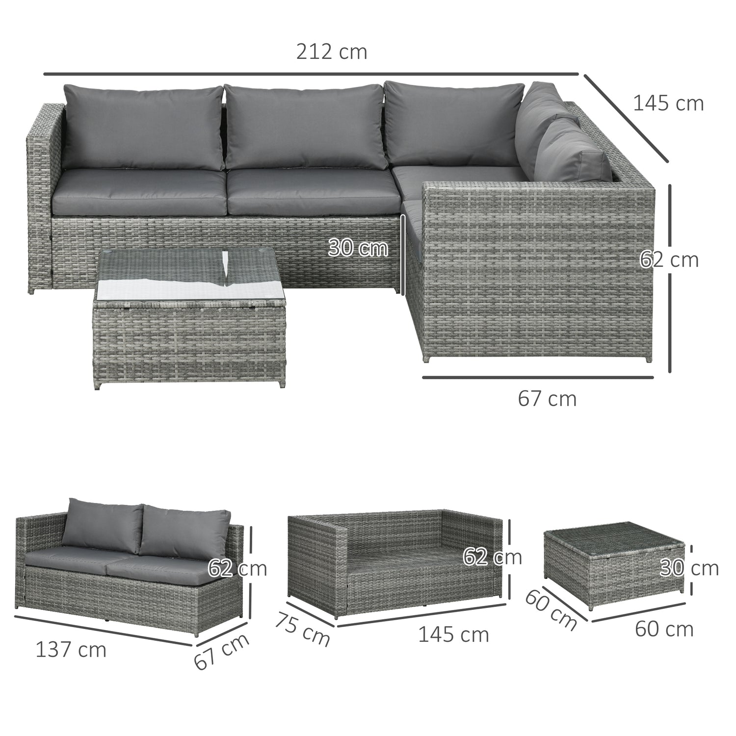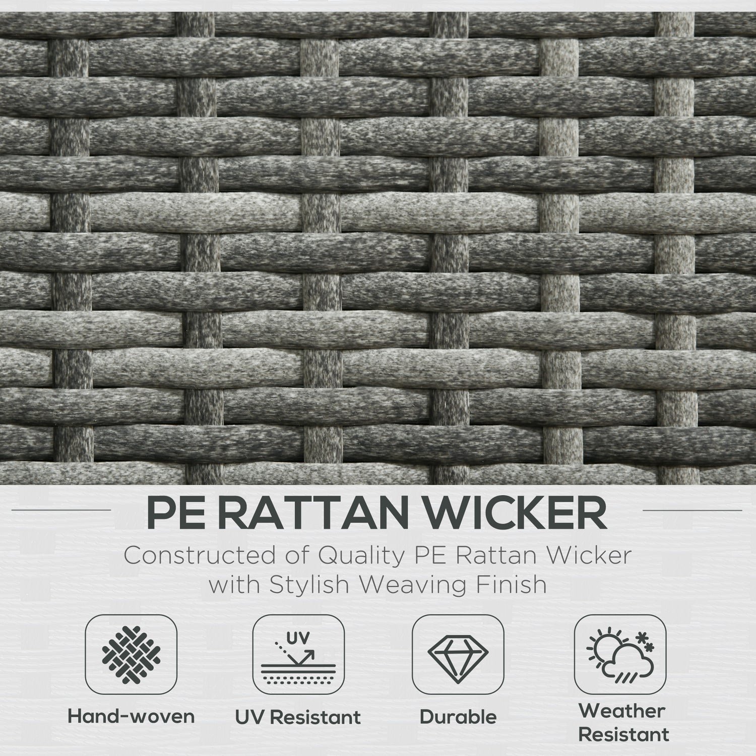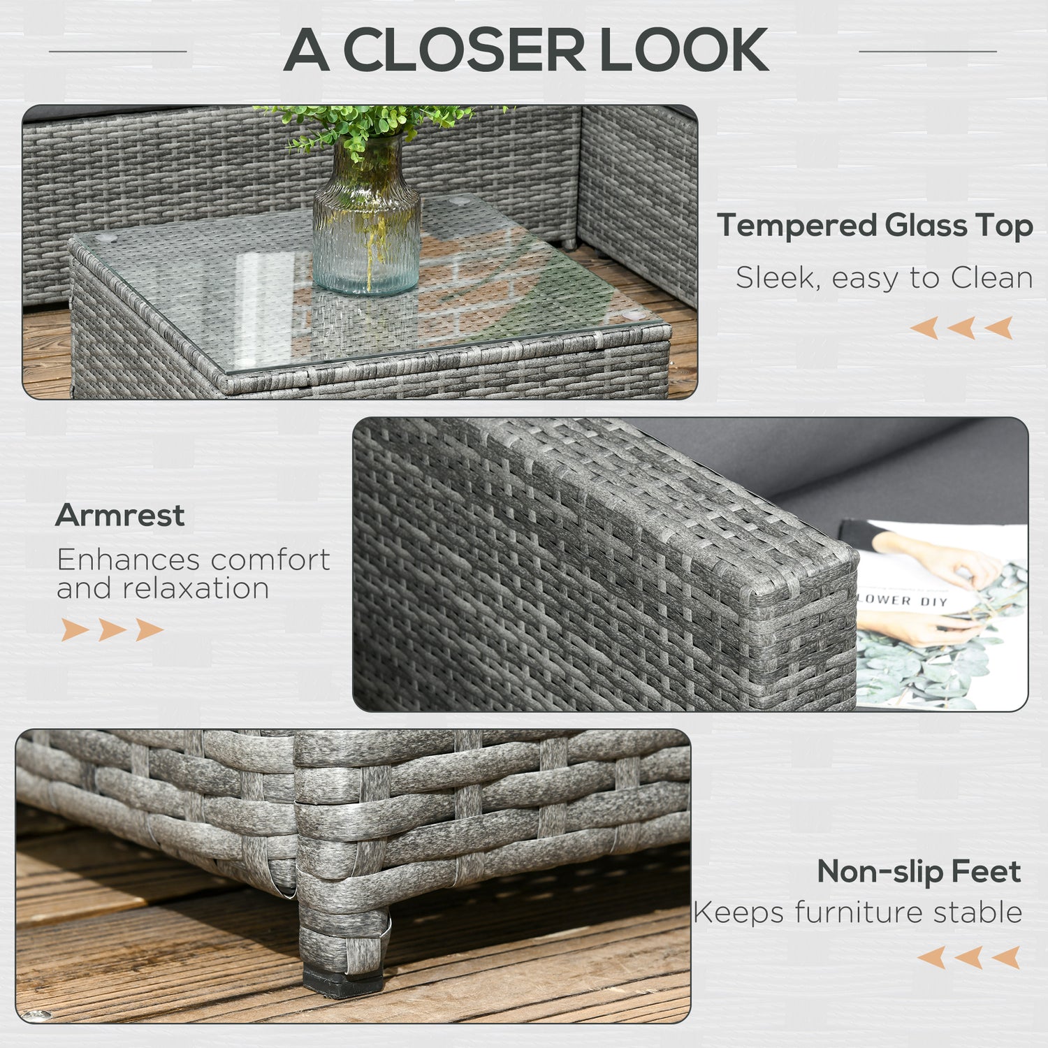 Outsunny 3 Pieces Rattan Garden Furniture 4 Seater Outdoor Patio Corner Sofa Chair Set with Coffee Table Thick Cushions Grey