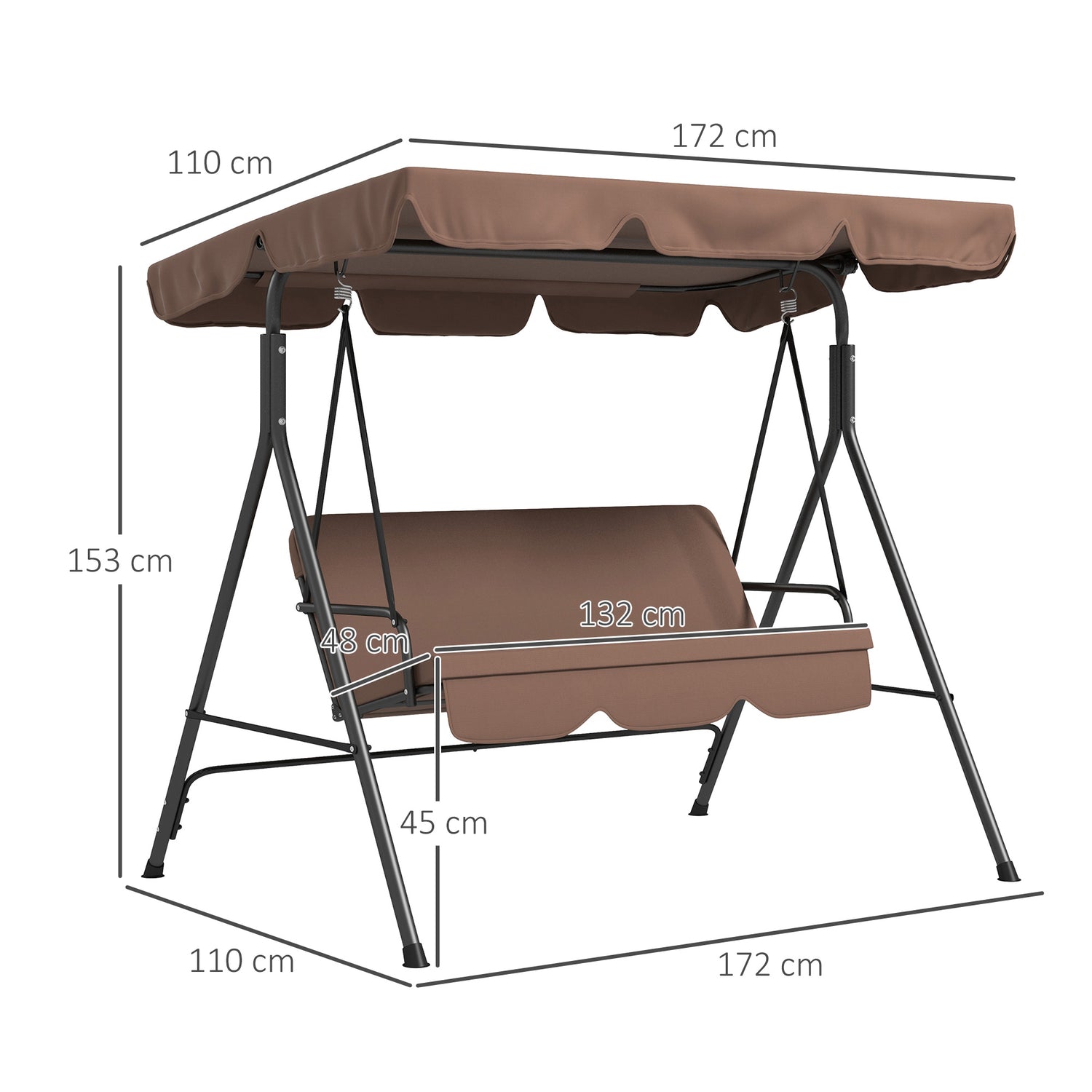 Outsunny 3-Seat Swing Chair Garden Swing Seat with Adjustable Canopy for Patio, Brown