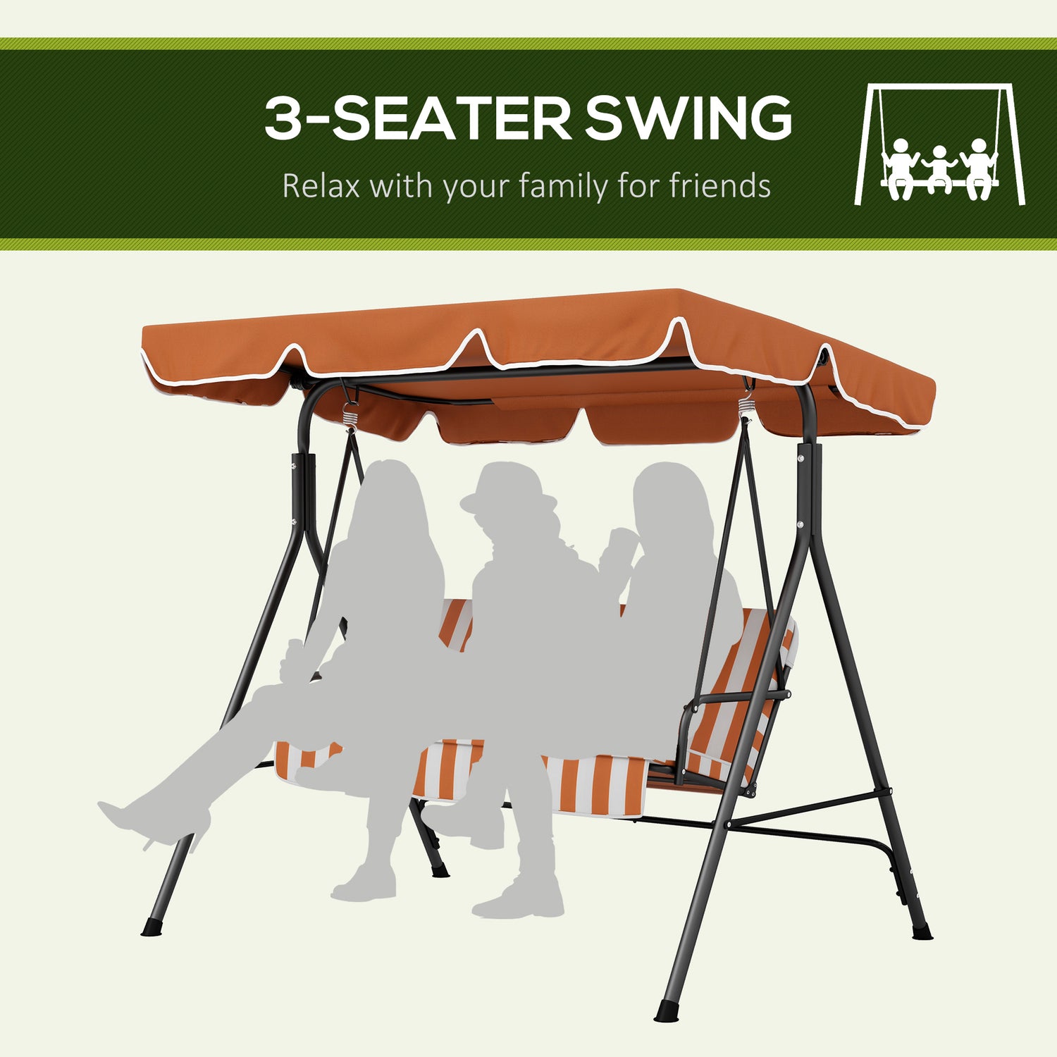 Outsunny 3-Seat Swing Chair Garden Swing Seat with Adjustable Canopy for Patio, Orange