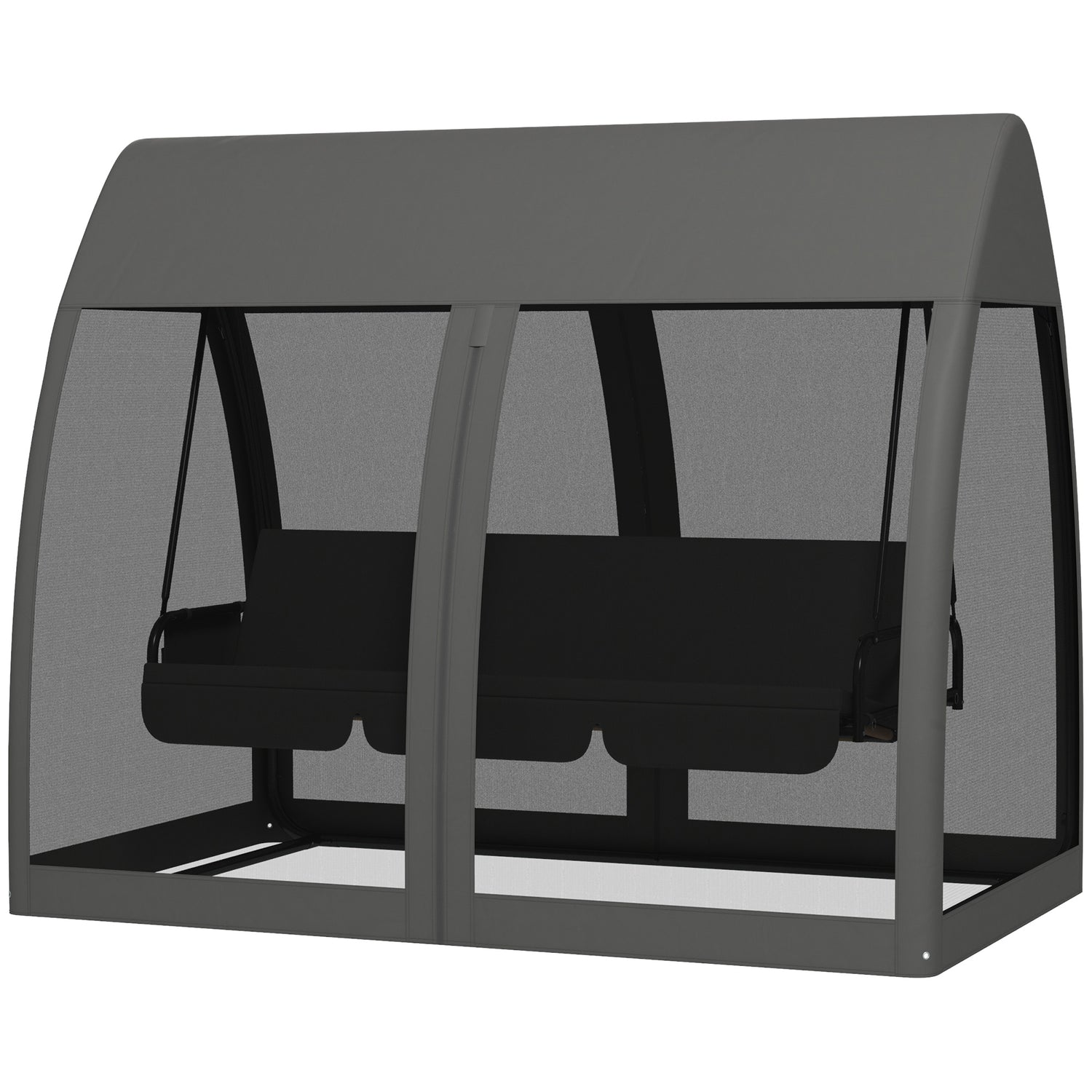 Outsunny 3 Seater Swing Chair 2 in 1 Garden Swing Seat Bed Convertible Outdoor Rocking Bench Bed with Water-Resistant Roof, Zipped Door and Mosquito Netting, Grey