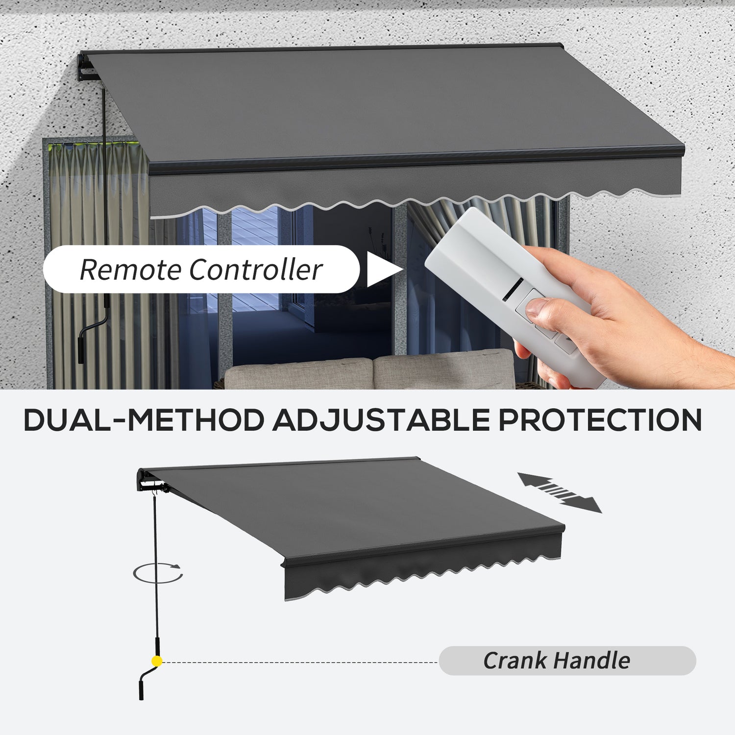 Outsunny 3 x 2m Aluminium Frame Electric Awning, Retractable Awning Sun Canopies for Patio Door Window, Dark Grey