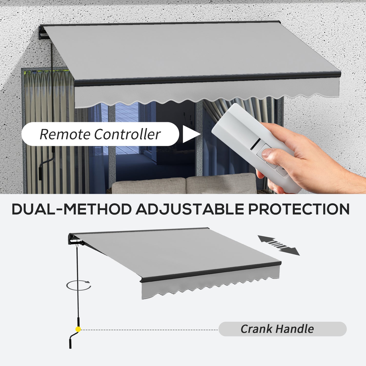 Outsunny 3 x 2m Aluminium Frame Electric Awning, Retractable Awning Sun Canopies for Patio Door Window, Light Grey