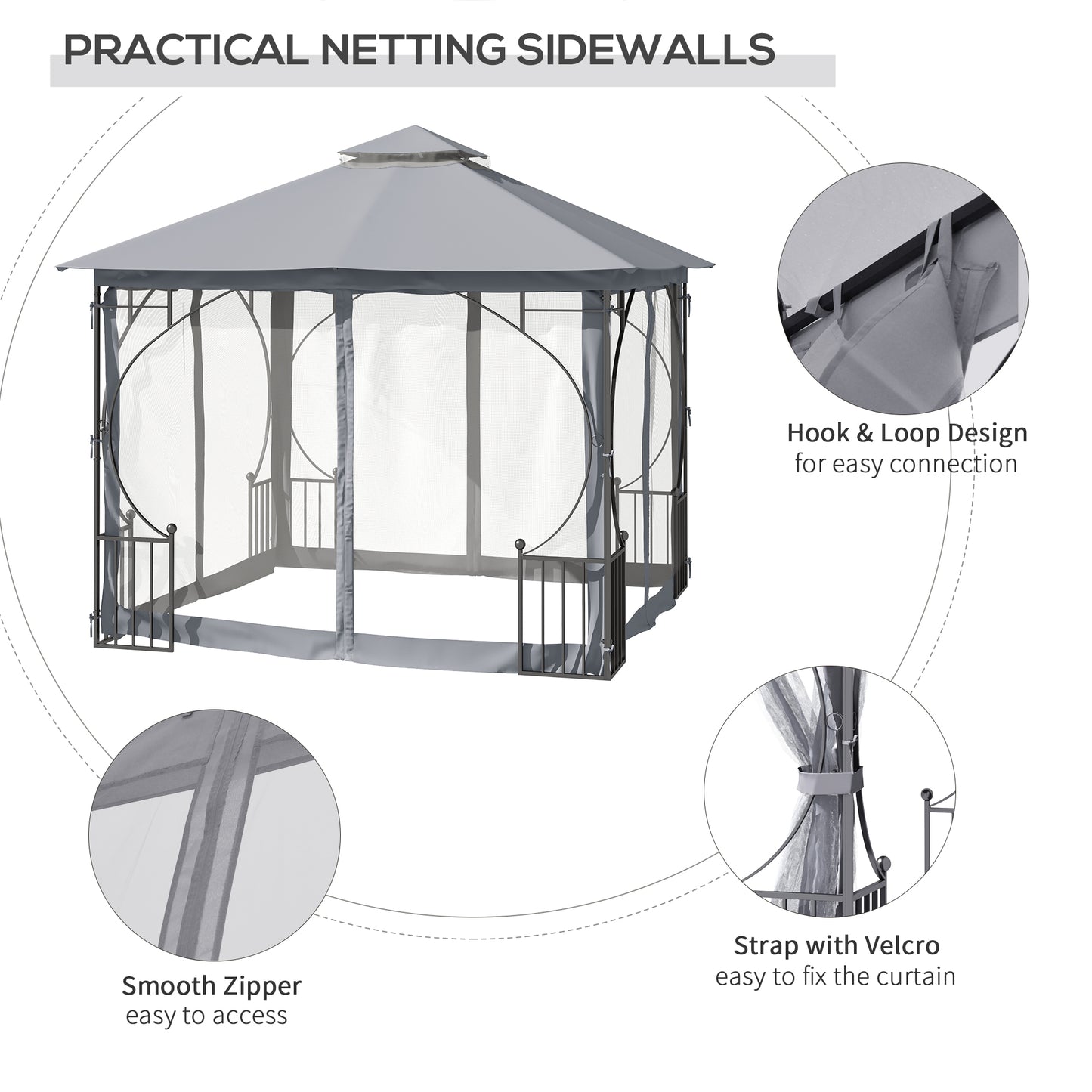 - Practical design: Outsunny's 3x3(m) metal frame gazebo is designed to provide a cool place for outdoor parties, family picnics, garden barbecues and other social gatherings.