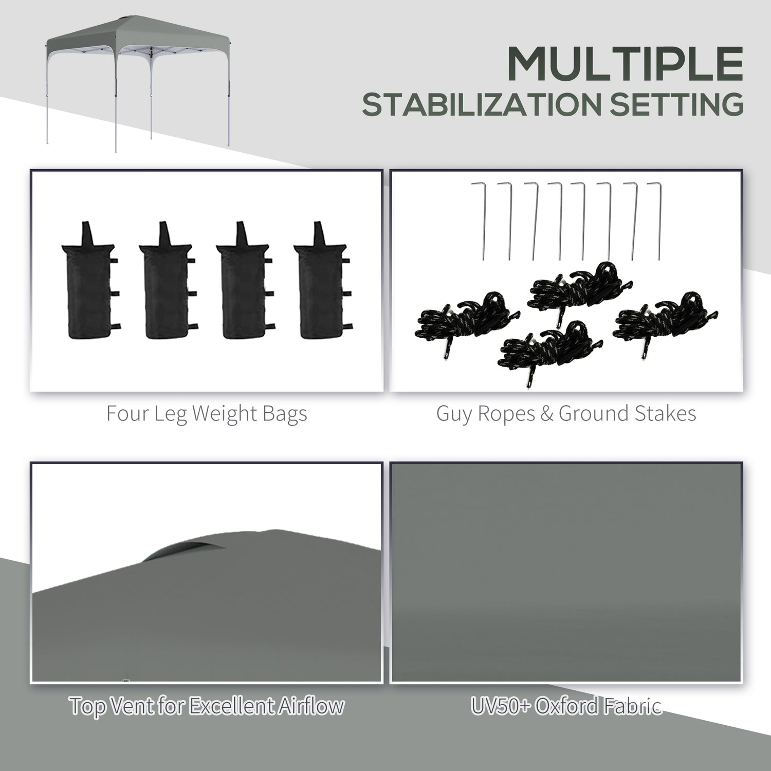 - MULTIPLE STABILIZATION SETTING: Contains ground nails, ropes, and 4 sets of sandbags to improve the stability of the garden gazebo during use. Top vents design is designed to provide excellent airflow and provide stability in windy conditions