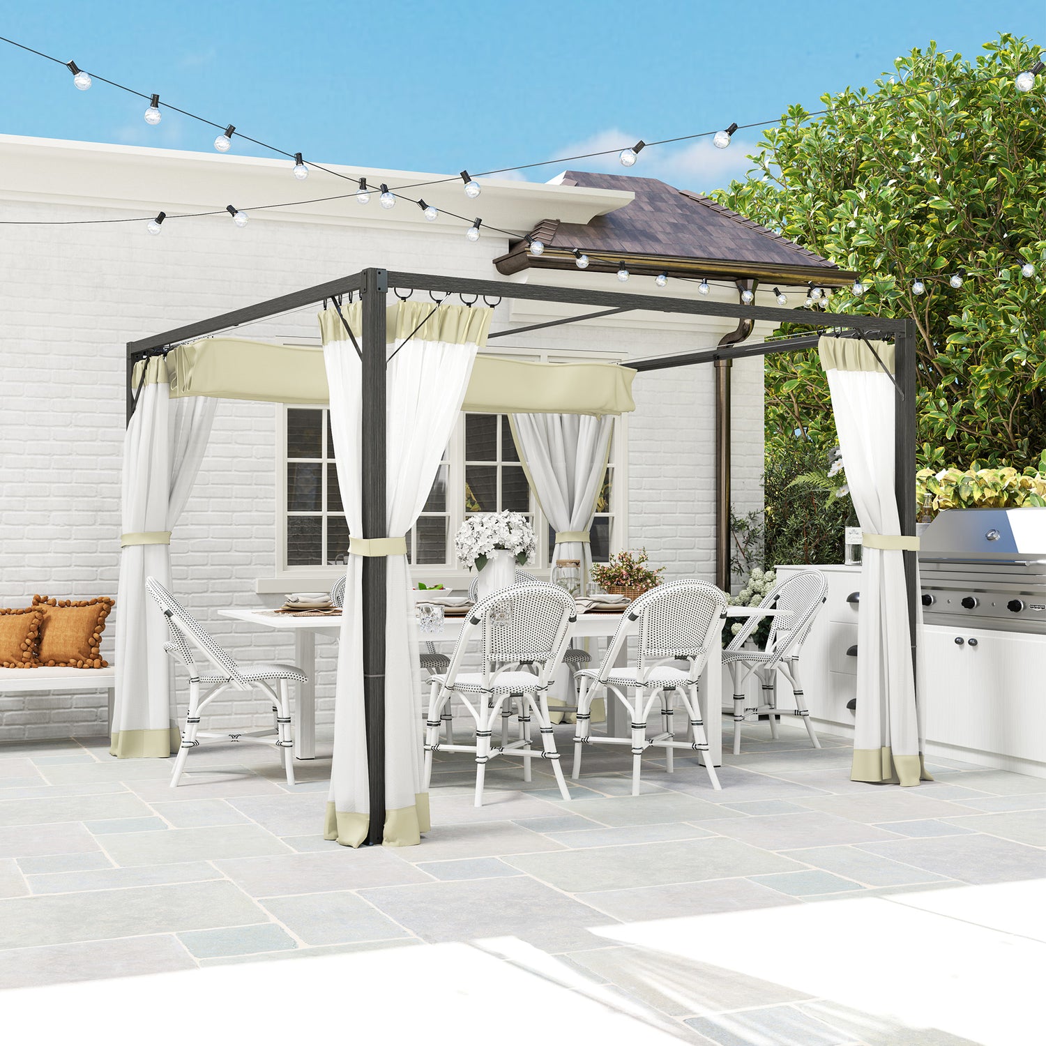 Outsunny 3 x 3m Aluminium Frame Pergola, with Retractable Roof - Khaki