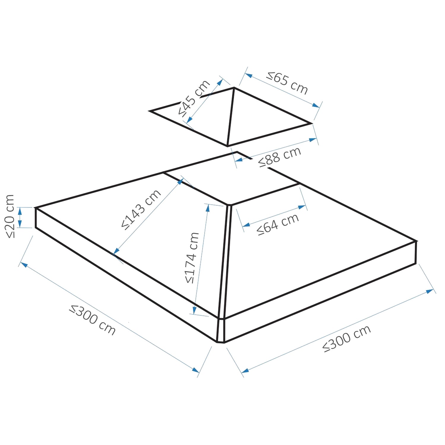 - Small Roof Size: 88L x 65W cm