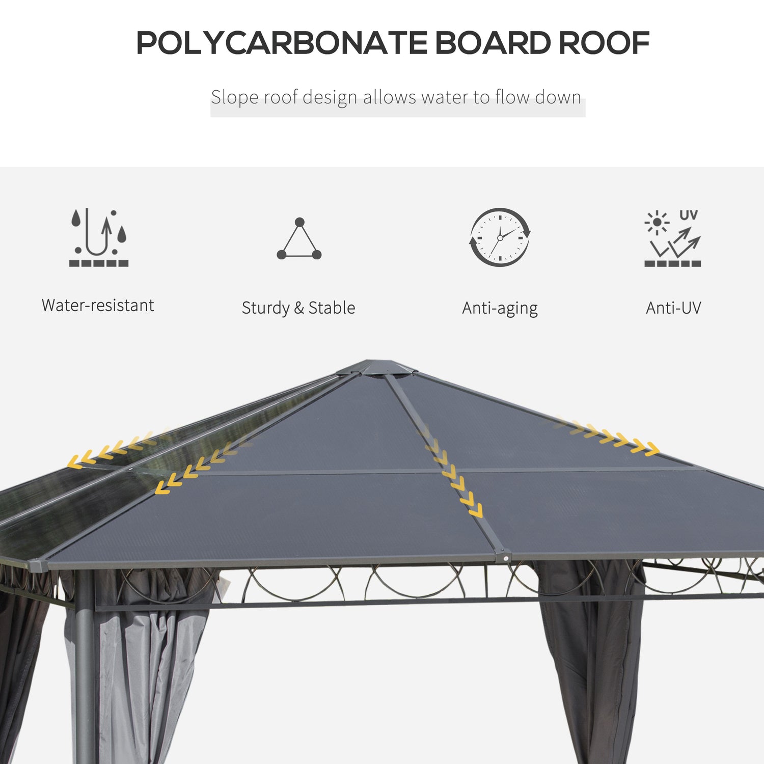 Outsunny 3 x 3(m) Hardtop Gazebo with UV Resistant Polycarbonate Roof, Steel & Aluminum Frame, Garden Pavilion with Curtains, Grey