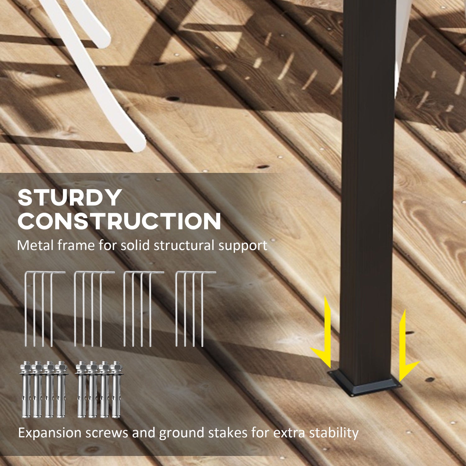 This retractable pergola from Outsunny allows you to adjust the canopy as you desire - enjoy the sunshine or relax in the shade. The metal structure is strong, with ground stakes and expansion screws included to keep it attached to the floor. It comes with a moving PU coated roof - easy to deal with moving sun rays. The curtains can also be moved - create an open/disclosed environment too. Enjoy outdoors better than ever before.