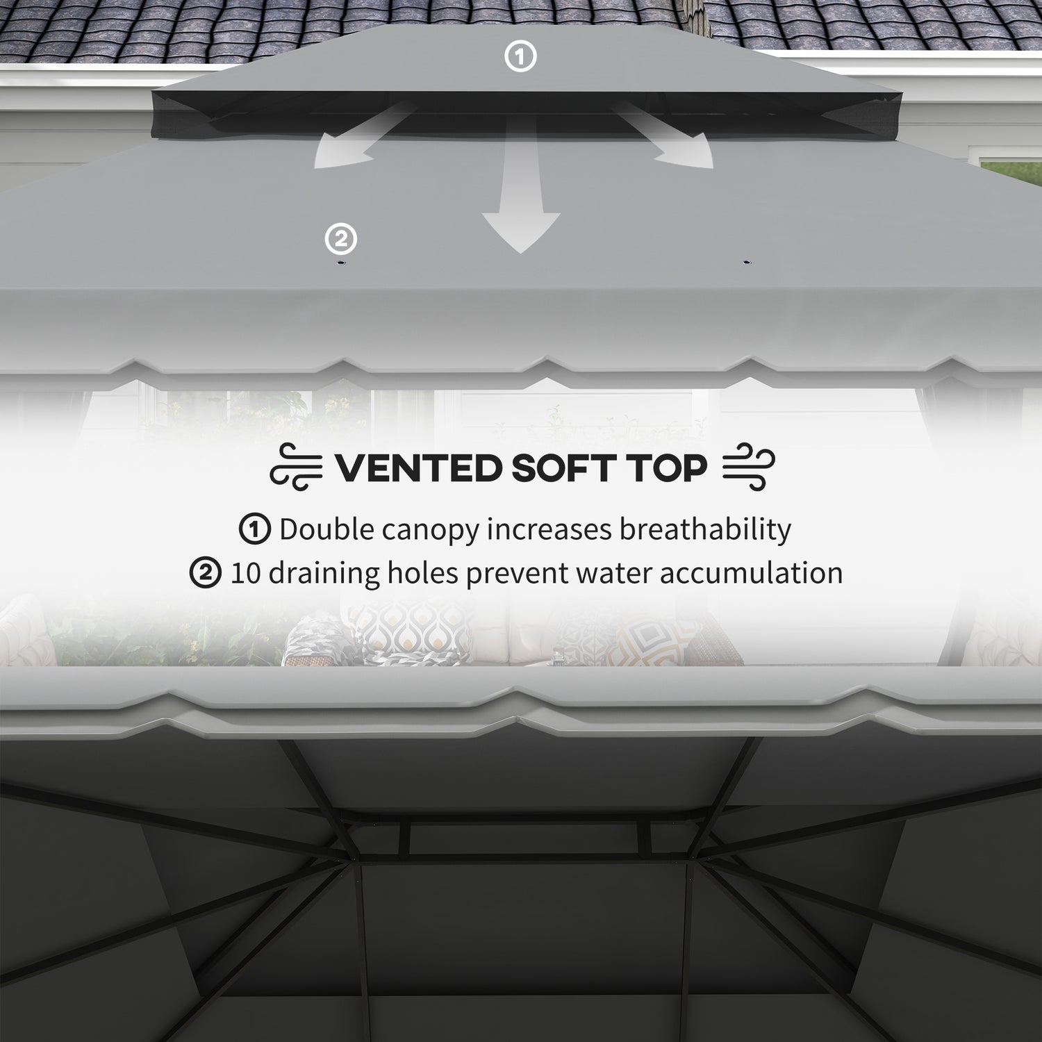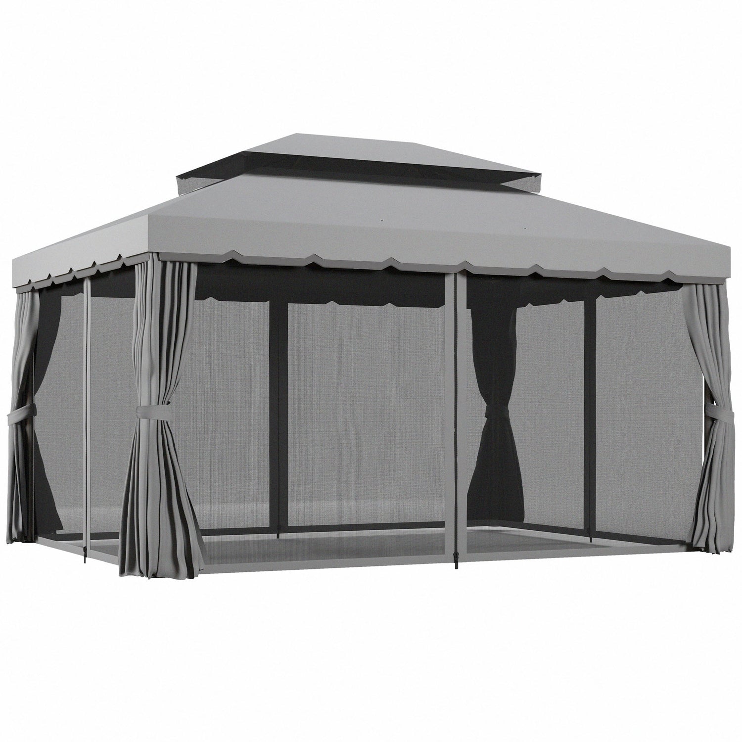 Outsunny 3 x 4m Aluminium Garden Gazebo, Marquee Canopy Shelter Pavilion Party Tent with Nets and Curtains for Garden and Deck, Light Grey