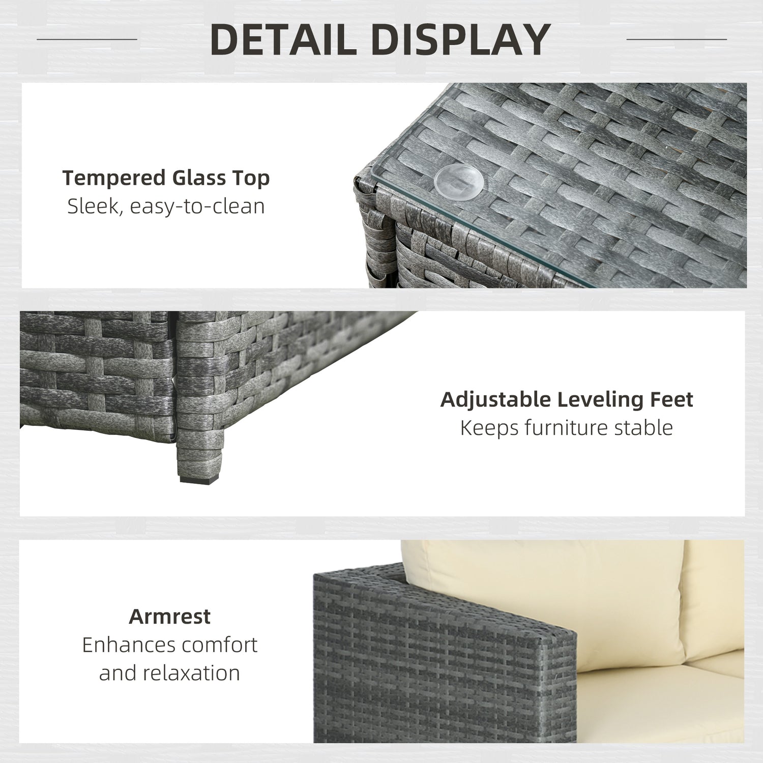 Outsunny 3Pcs Rattan Garden Furniture 4 Seater Outdoor Patio Corner Sofa Chair Set with Coffee Table Thick Cushions, Beige