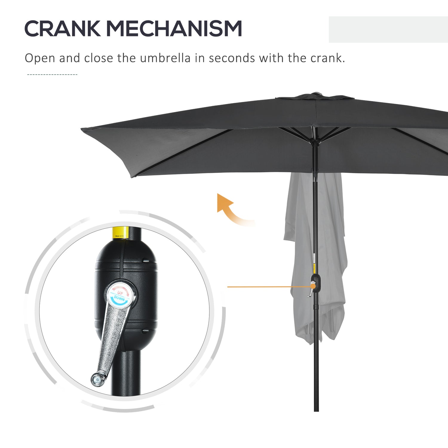 Outsunny 3x2m Patio Parasol Garden Umbrellas Canopy with Aluminum Tilt Crank Rectangular Sun Shade Steel, Black