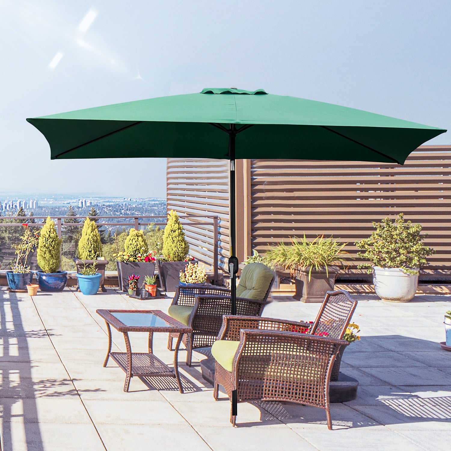 Outsunny 3x2m Patio Parasol Garden Umbrellas Canopy with Aluminum Tilt Crank Rectangular Sun Shade Steel, Green