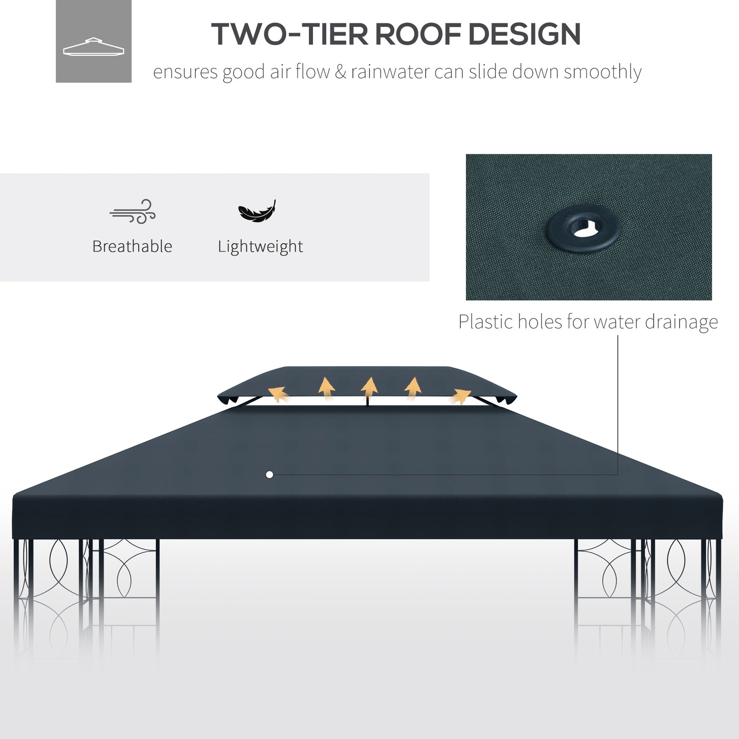 Outsunny 3x4m Gazebo Replacement Roof Canopy 2 Tier Top UV Cover Garden Patio Outdoor Sun Awning Shelters Deep Grey (TOP ONLY)