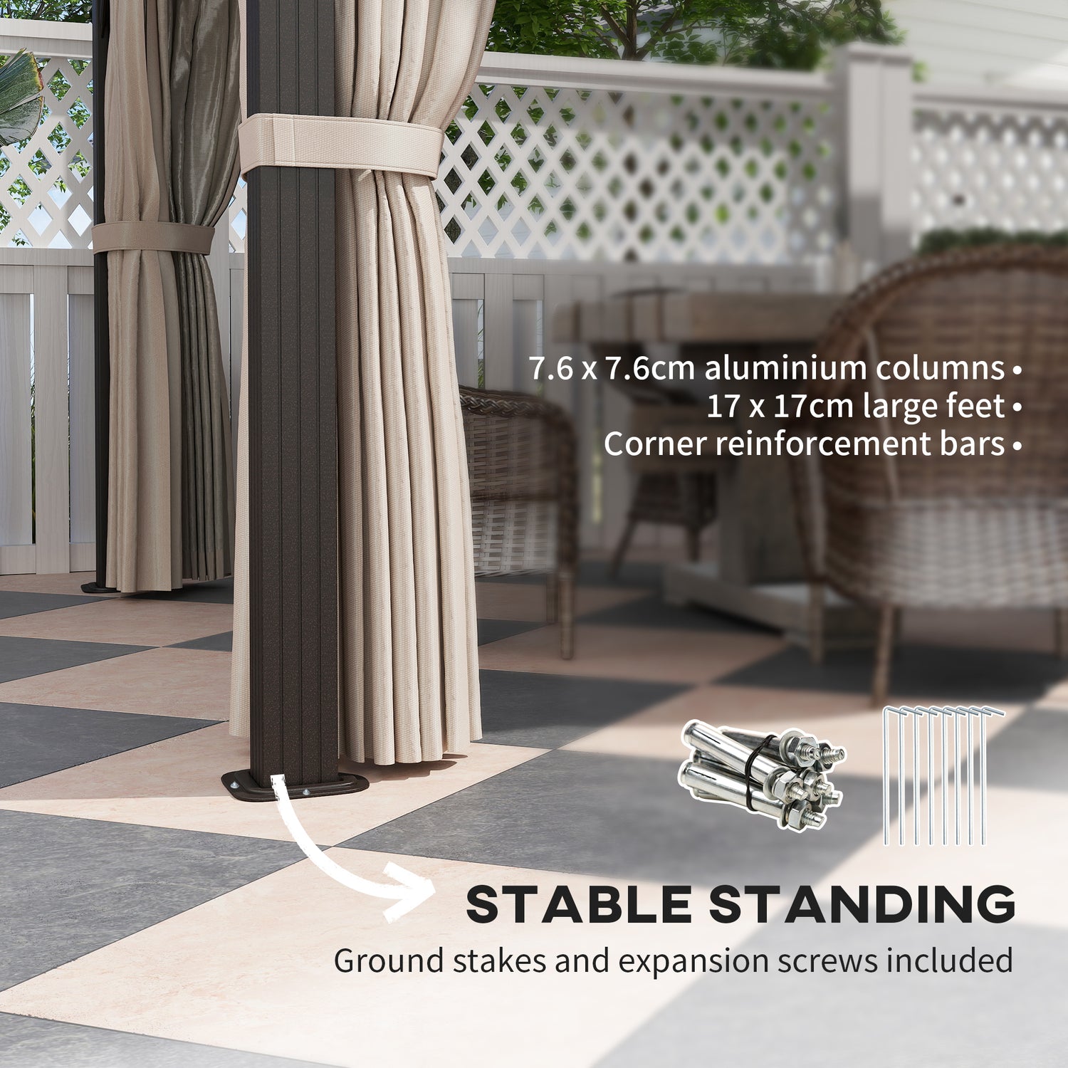 Outsunny 3x4m Hardtop Gazebo, UPF30+ Roof, Aluminium Frame, Mosquito Netting & Curtains, Beige