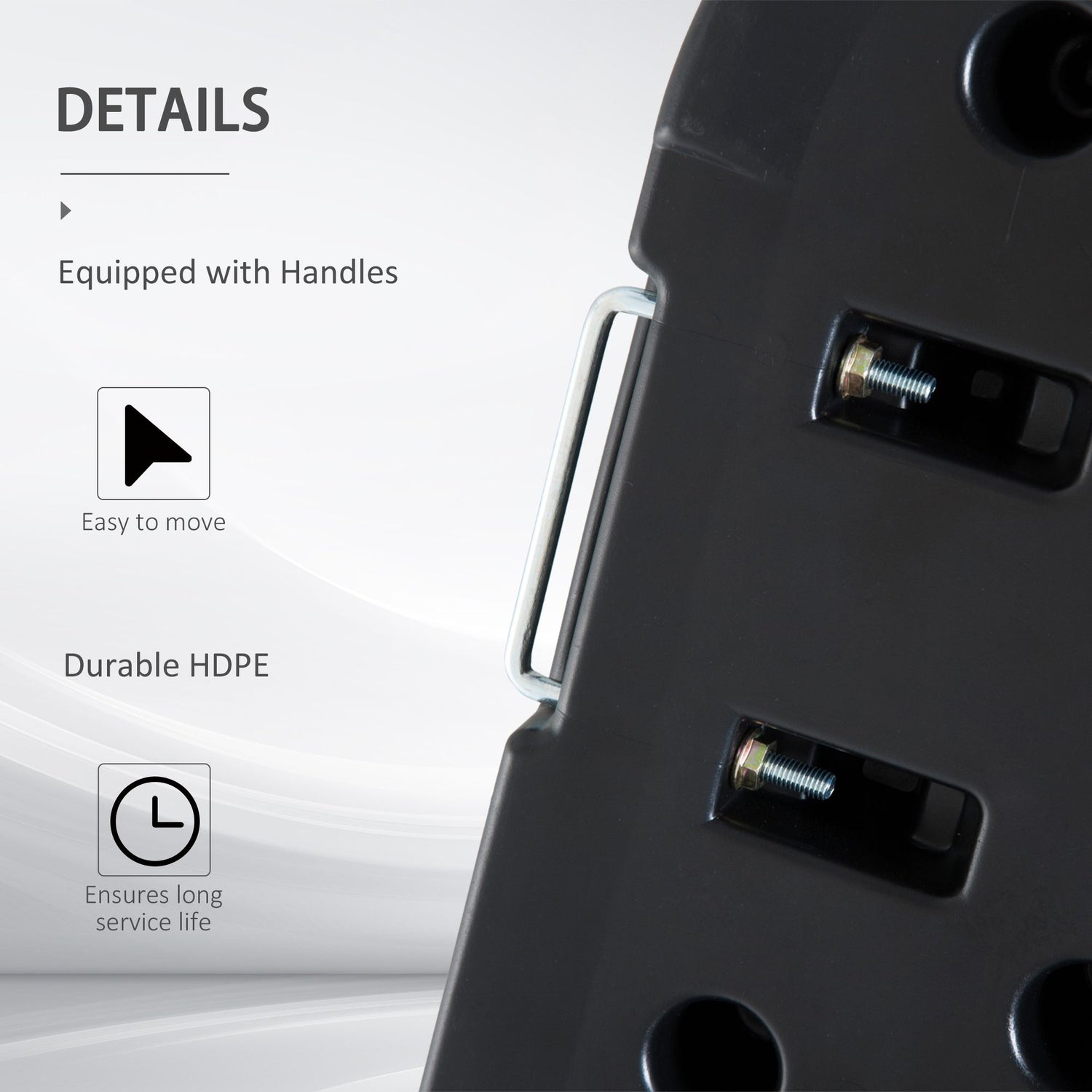 - THICK PLASTIC: HDPE is tough and sturdy. These parasol weights are suitable for outdoor use.