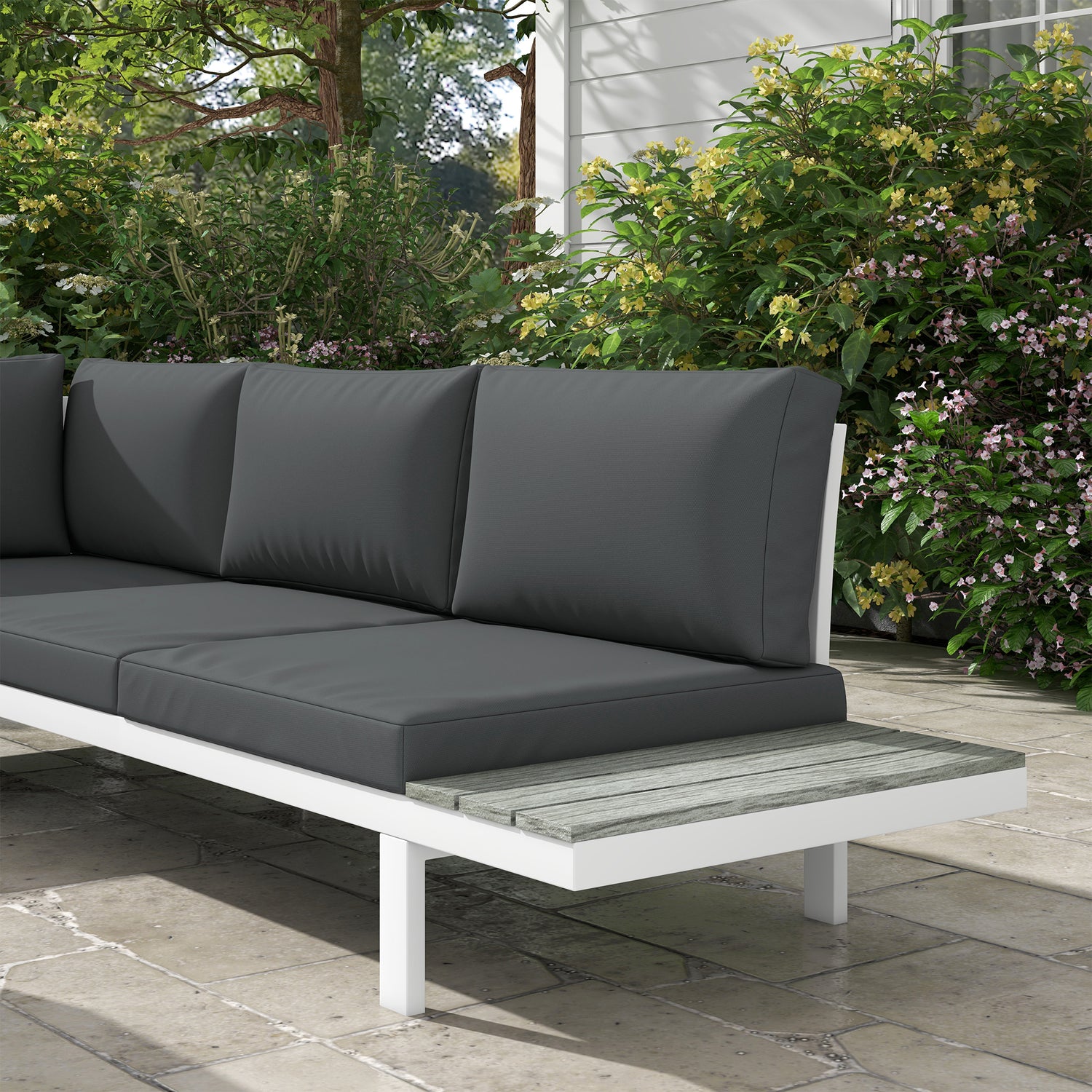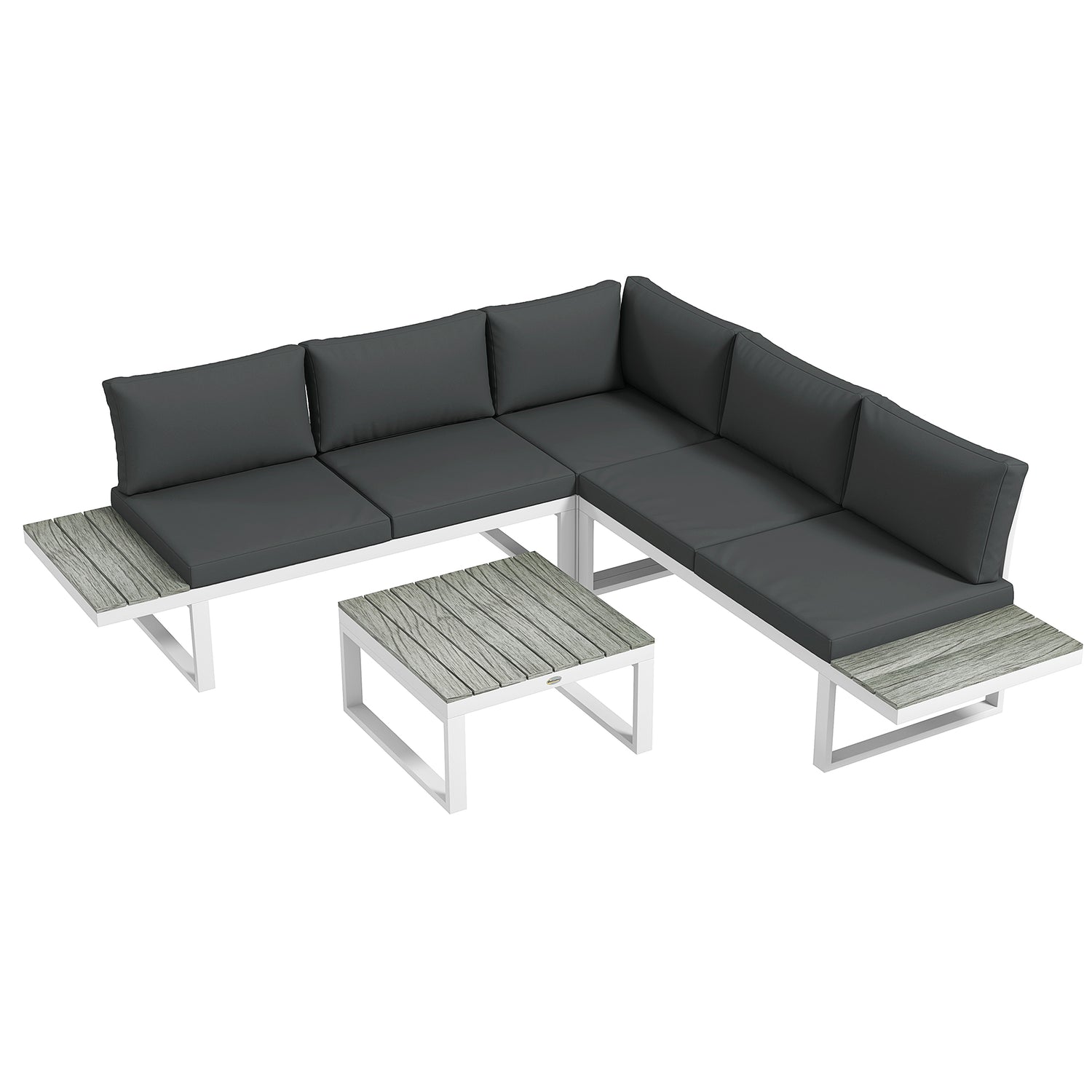 Enjoy the outdoors in style with this Outsunny outdoor furniture set. Comes with two loveseats, a corner seat and a matching coffee table. Powder coated steel means each piece is strong, with the padded cushions keeping you comfortable. The small table included means a handy holding place.