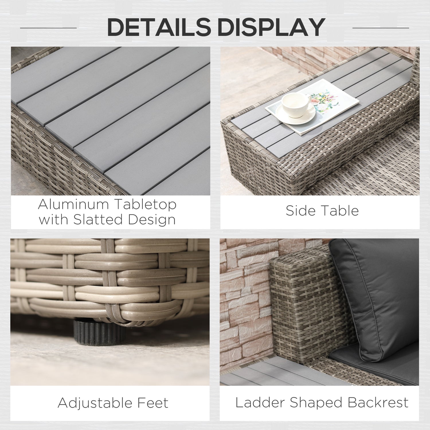 Outsunny 4 PCs Rattan Garden Furniture Outdoor Sectional Corner Sofa and Coffee Table Set Wicker Weave Furniture w/ Armrest and Cushions - Light Grey