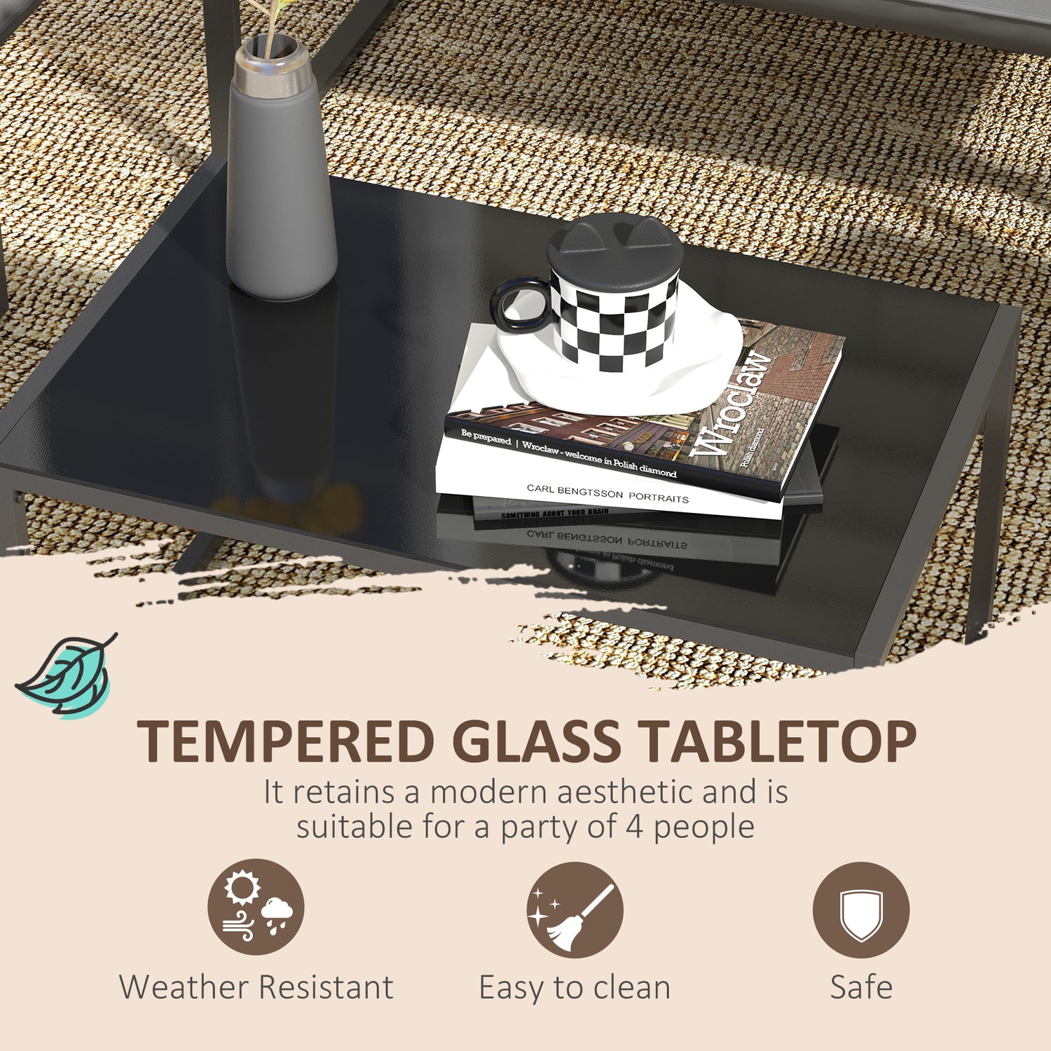 Let friends and family gather around in simple yet sleek style outdoors, thanks to this Outsunny patio set. Comes with four pieces – two armchairs, a two-seater sofa and a dining table; all with steel frame for a tough and strong structure. Thick padded cushions on the seats and backs for comfort as you relax. A tempered glass on the long table adds a beautiful finish, with protective pads on each foot for balance.