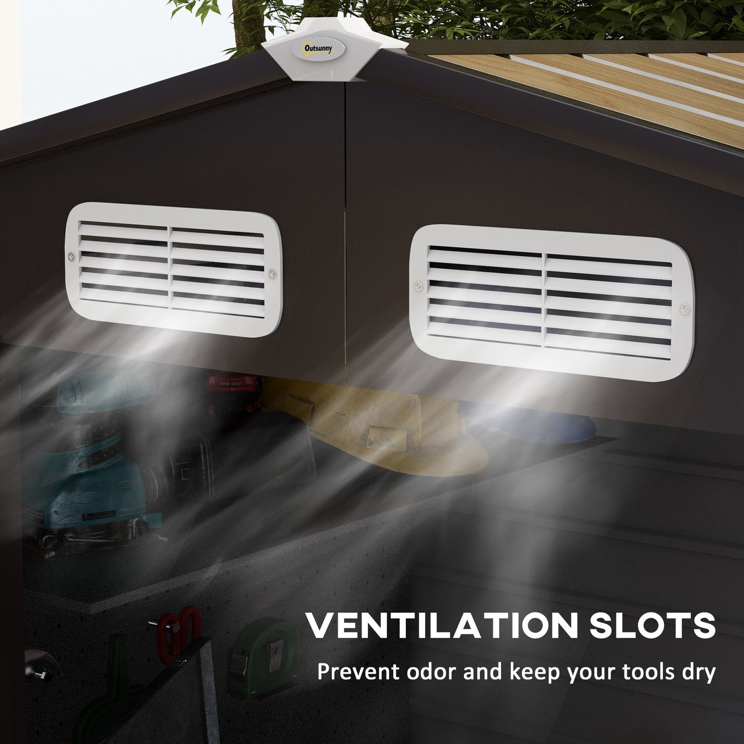 - Two ventilation slots: Brings air inside garden storage shed, helps prevent odour and keeps tools and equipment dry.