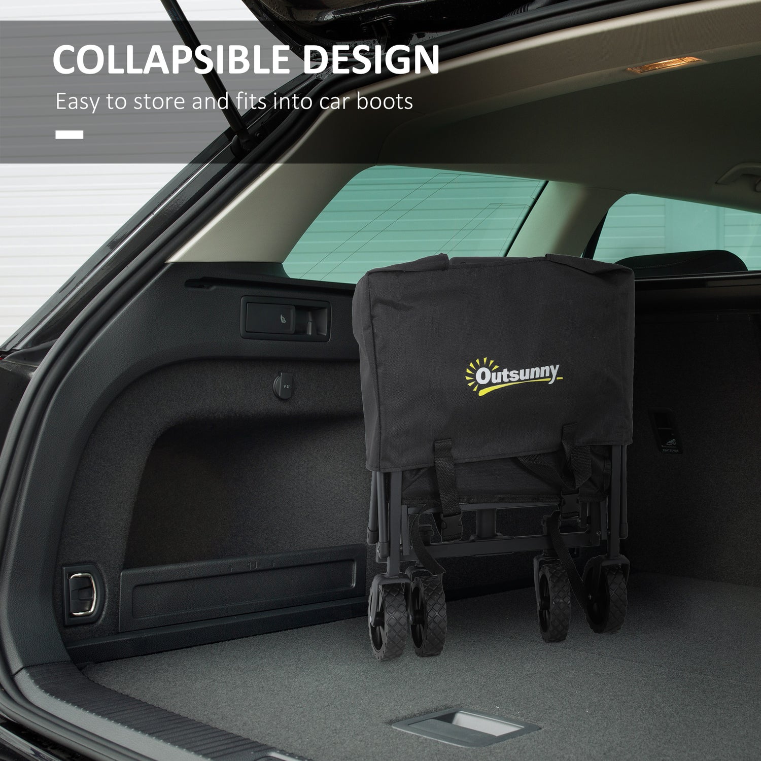 Outsunny 41L Festival Trolley, 60kg Heavy Duty Folding Wagon with Adjustable Handle and Carry Bag for Beach/Camping/Festival, Black