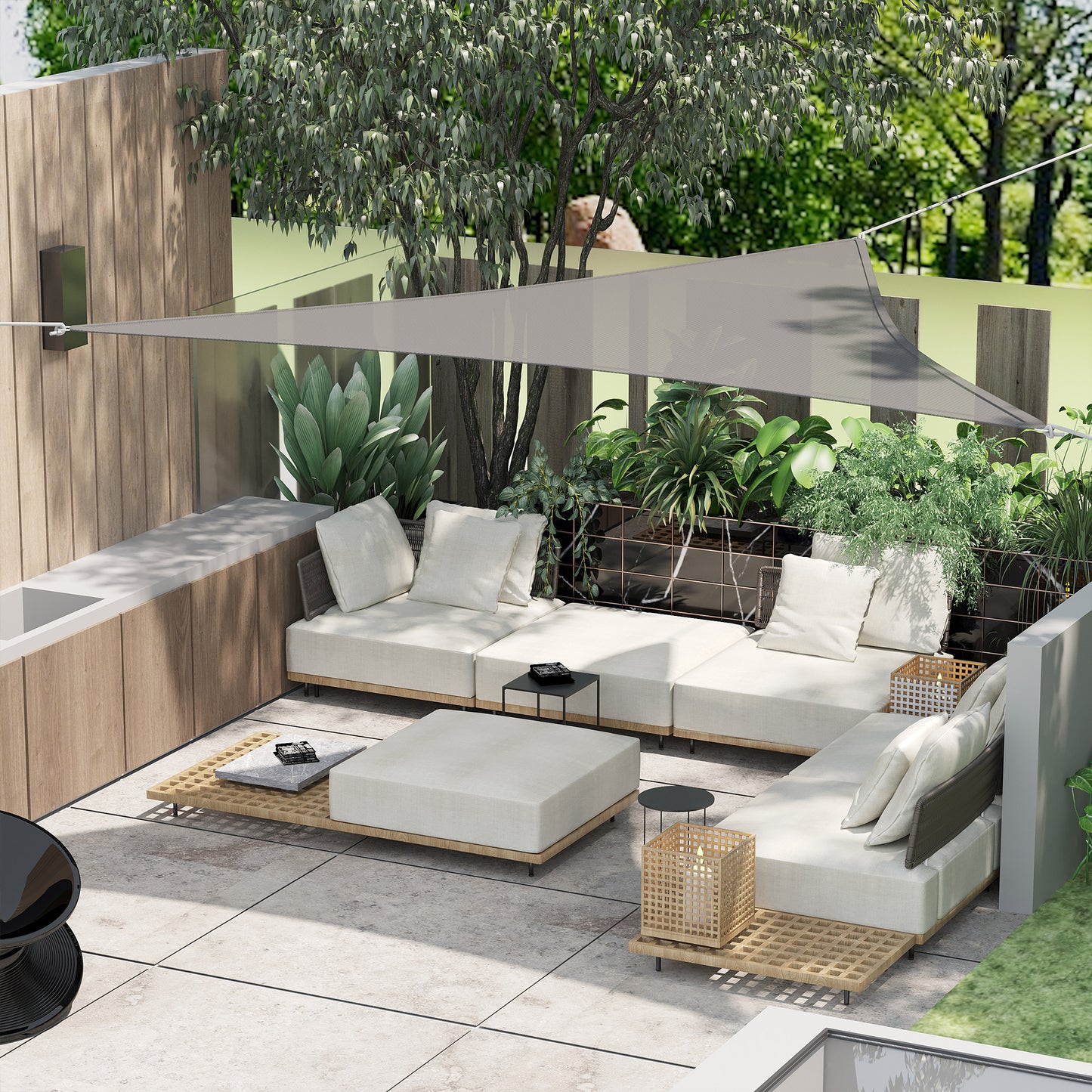 Outsunny 4x4m Triangle Sun Shade Sail Outdoor UV Protection Canopy w/ Steel Rings Ropes UV Block Outdoor Patio Shelter Grey