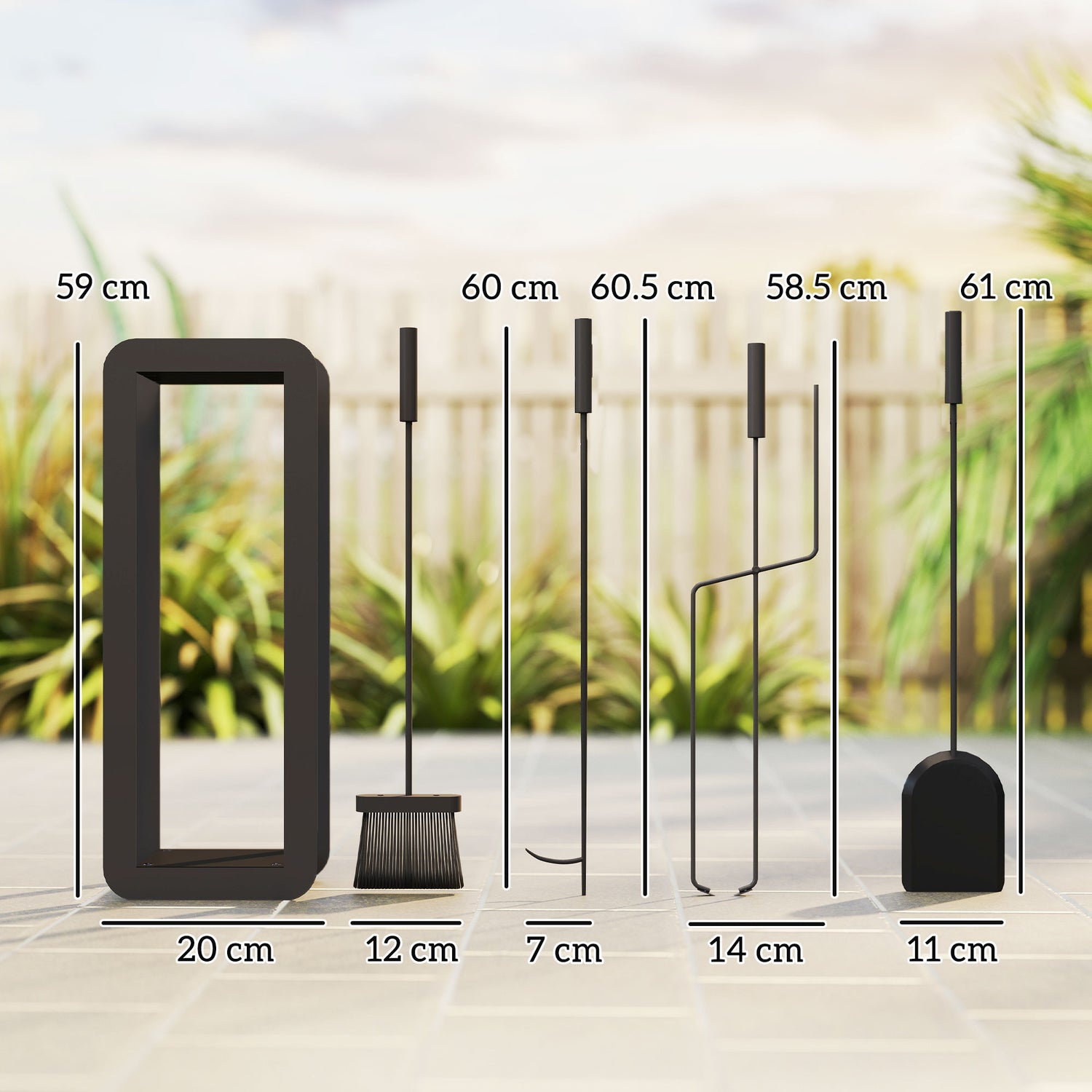 Outsunny 5 Piece Metal Fireplace Set - Includes Brush, Shovel, Poker, Tongs, and Stand, Black.