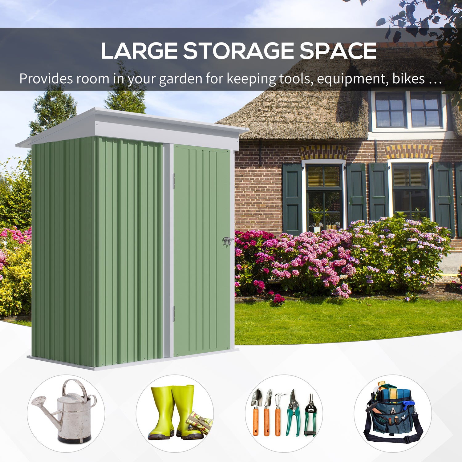 Outsunny 5'x3'x6' Metal Garden Shed, Outdoor Lean-to Shed for Tool Motor Bike, with Adjustable Shelf, Lock, Gloves, Green and White