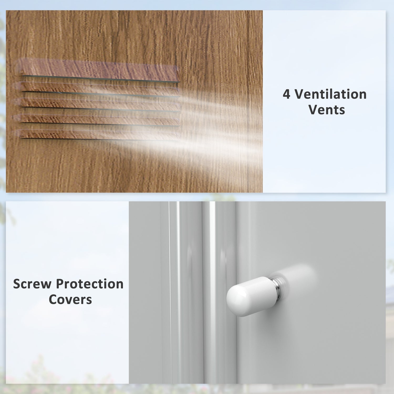 - Ventilation slots: The small shed is equipped with four vents, two on the front and two on the back, promoting air circulation to prevent moisture and mildew buildup.