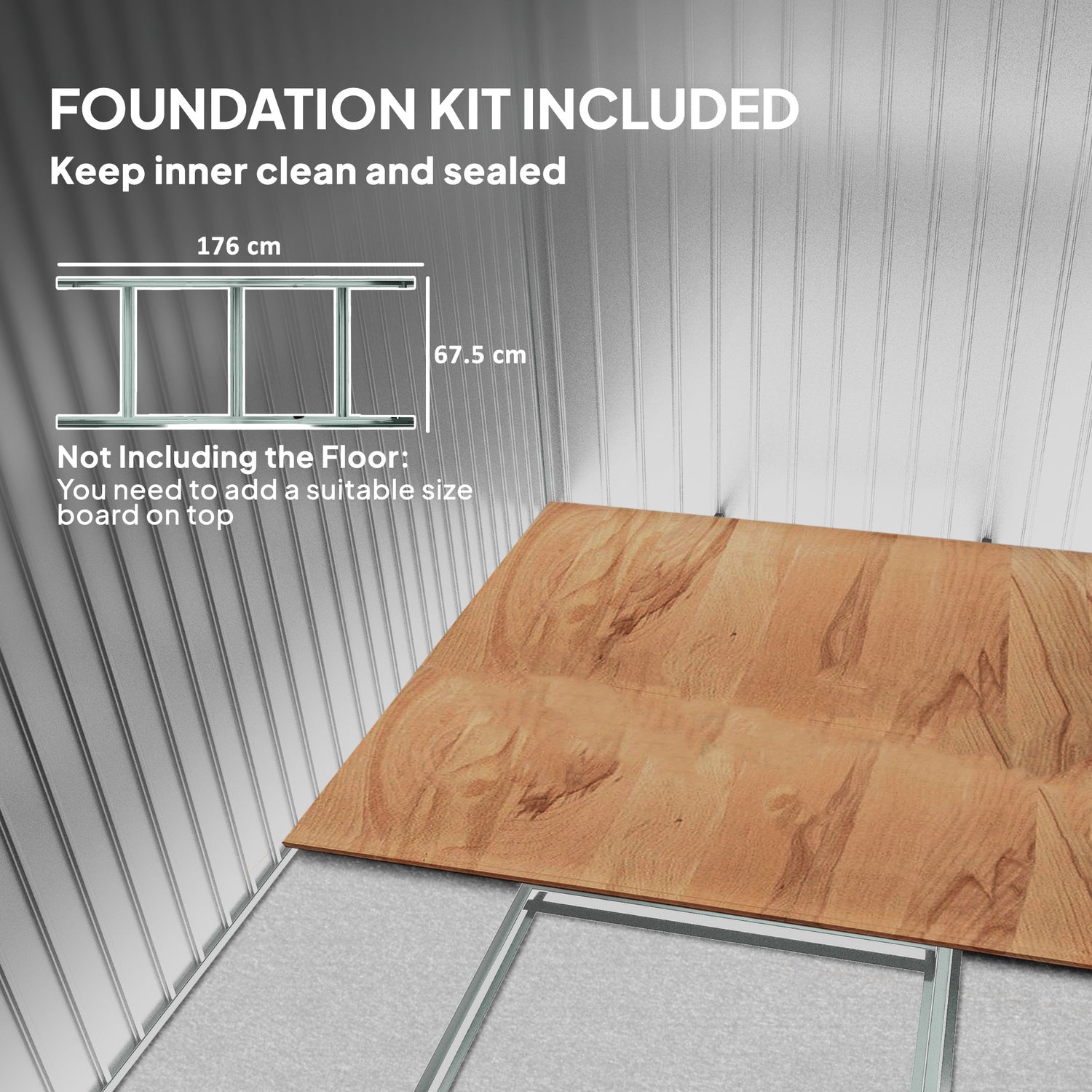 - Includes a foundation kit to keep storage items elevated