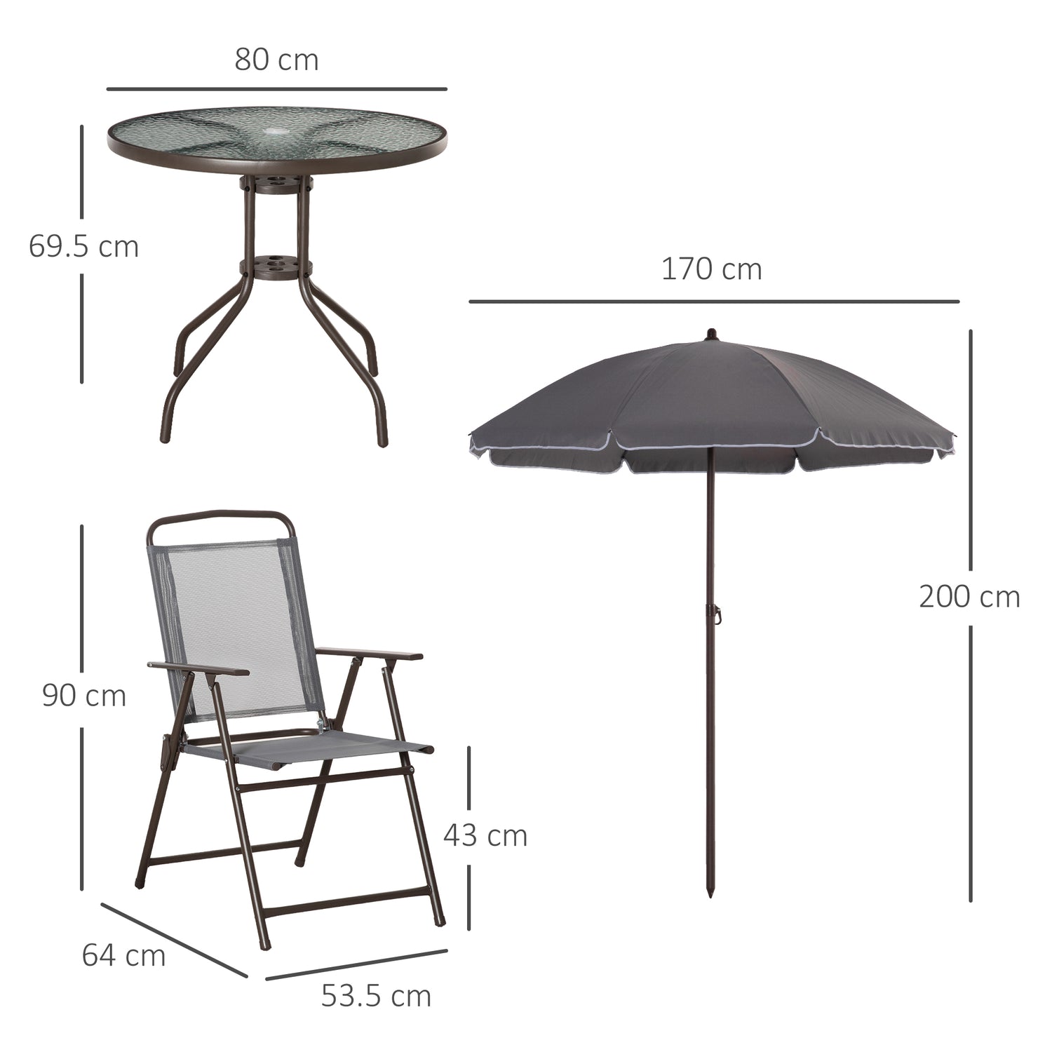 Outsunny 6 Piece Patio Dining Set with Umbrella, 4 Folding Dining Chairs & Round Tempered Glass Table for Garden, Backyard and Poolside, Brown