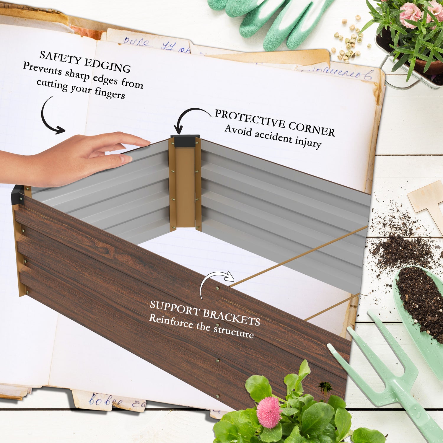 - Steel structure: Powder coated galvanised steel for great strength, raised garden bed planter is a safe shield for growing plants and more. Featuring multiple interior support brackets for safe plant growth and more.