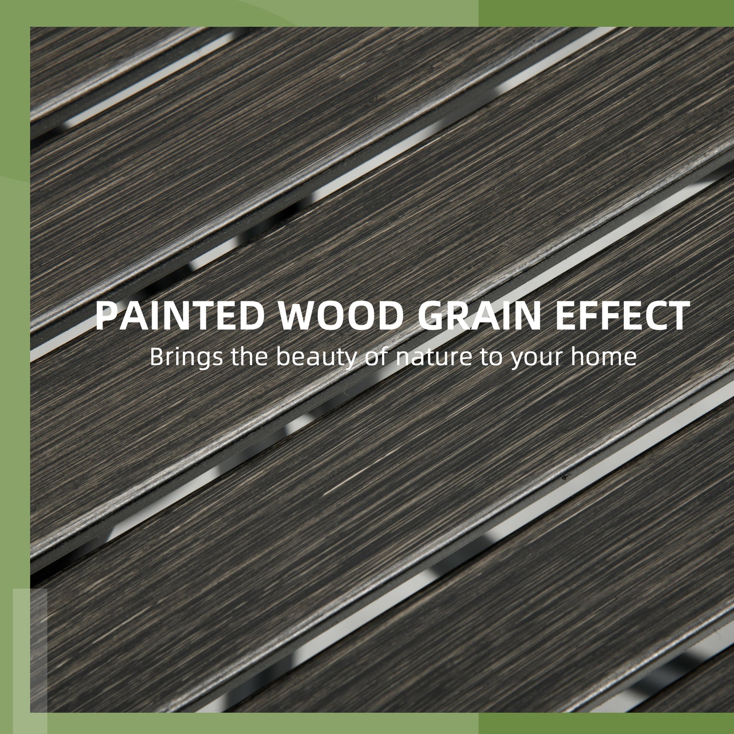 Enhance your outdoors with this Outsunny end table. Slatted tabletop is stylish and practical, preventing water building up and quick drying. The galvanised steel frame, with a powder-coated finish, means a strong and supportive core. This round garden table is suitable for plenty of occasions.