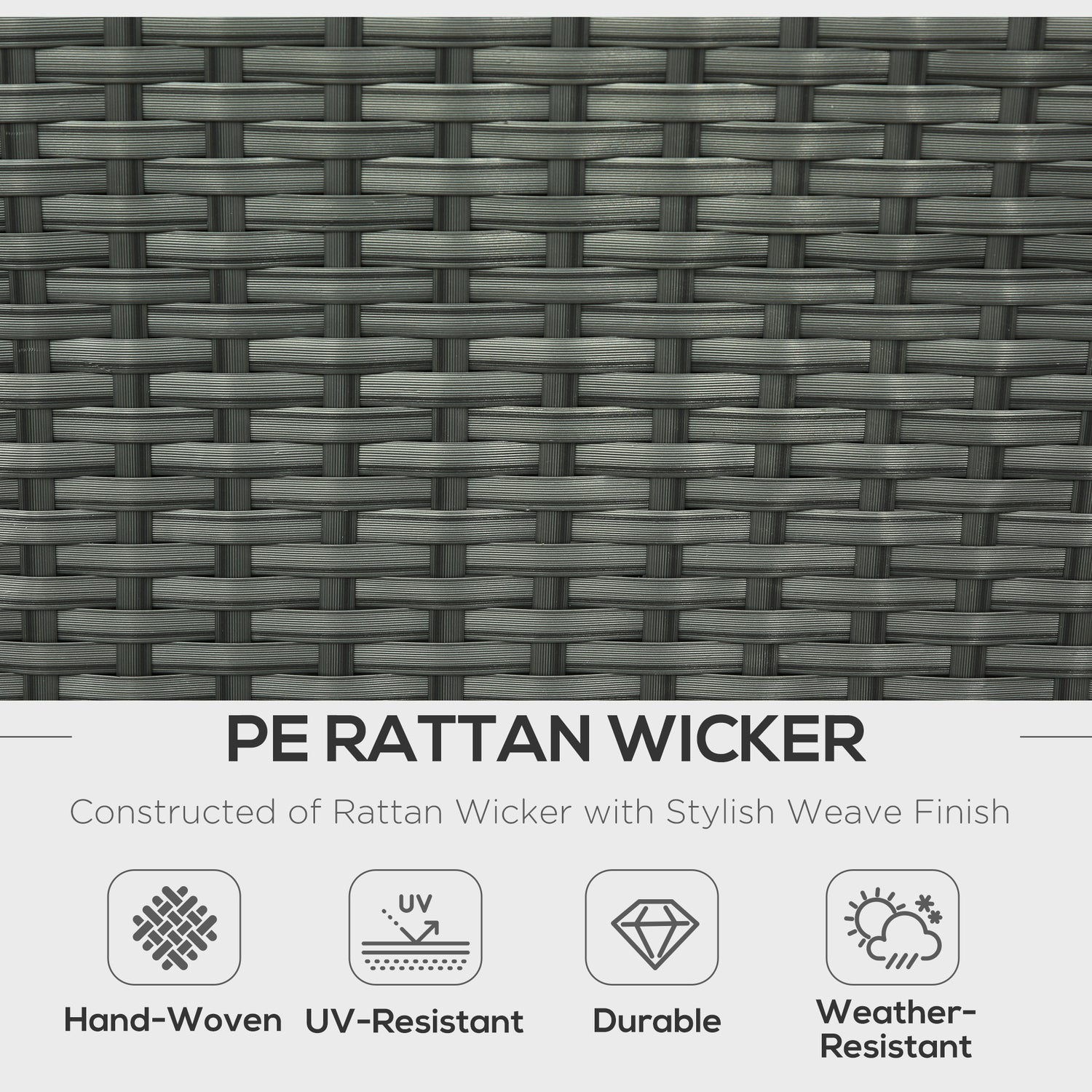 This Outsunny six-piece set is the ultimate for satisfying relaxation in your garden. Using powder coated steel for a robust and sturdy frame, each piece is wrapped in plastic wicker: protects against mild weather-damage and creates a stylish look. Both armchairs feature a 90°-130° reclining back, complete with thick padded cushions.