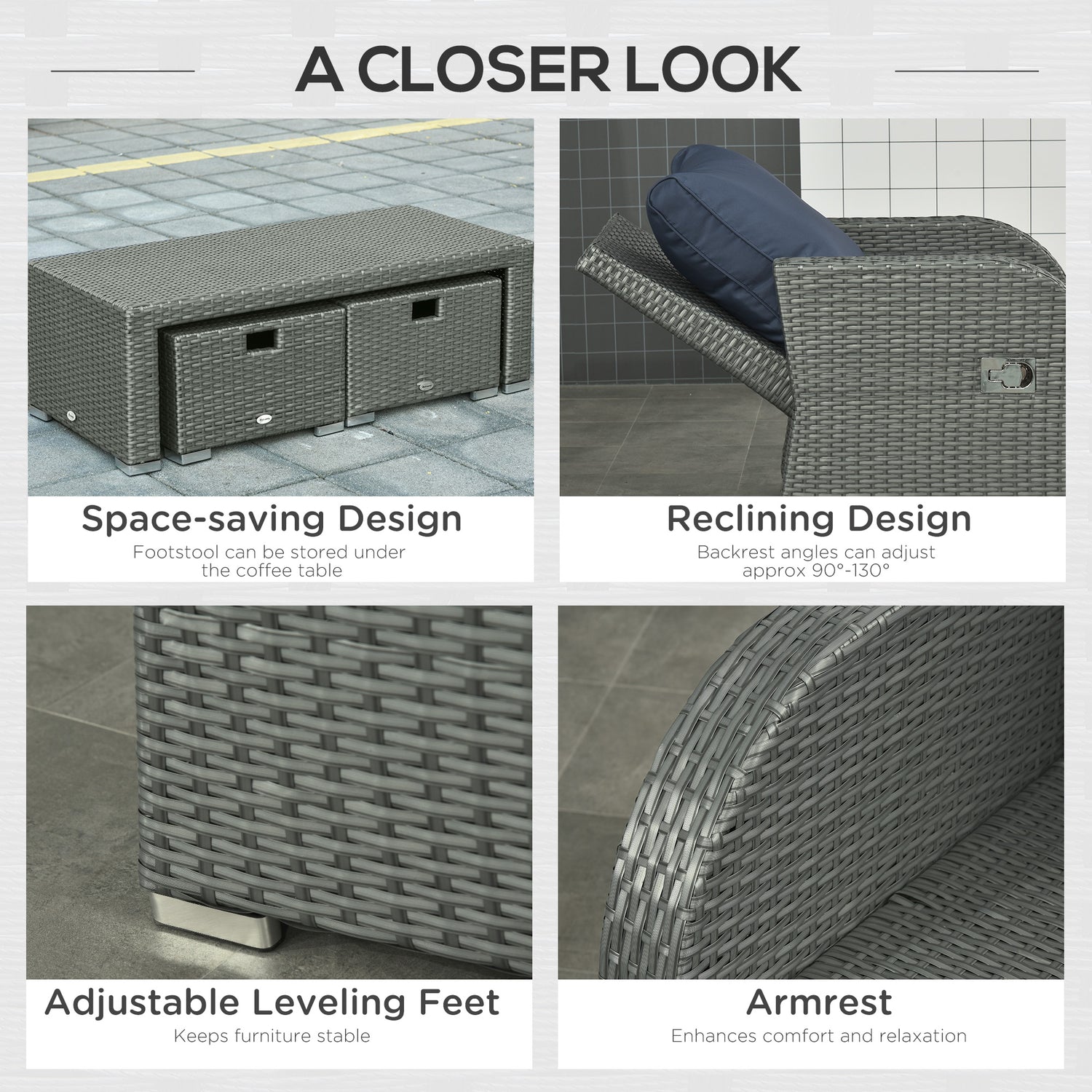 Outsunny 6pc Outdoor Rattan Wicker Furniture Set with 3-Seat Sofa, 2 Single Sofas, 2 Footstools and Coffee Table