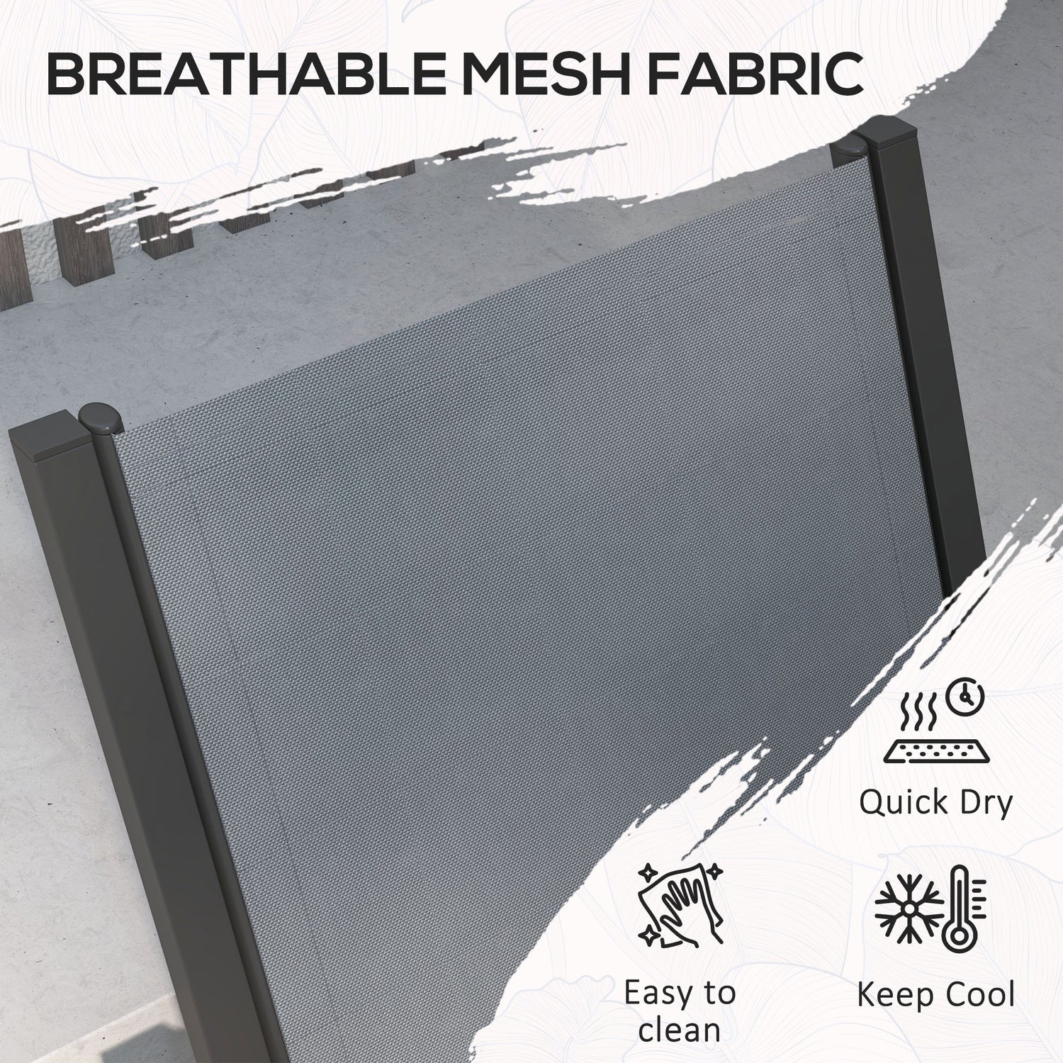 Outsunny 7 Pieces Garden Dining Set with Wood-plastic Composite Dining Table, Outdoor Table and 6 Stackable Armchairs with Breathable Mesh Fabric Seats and Backrest, Light Grey