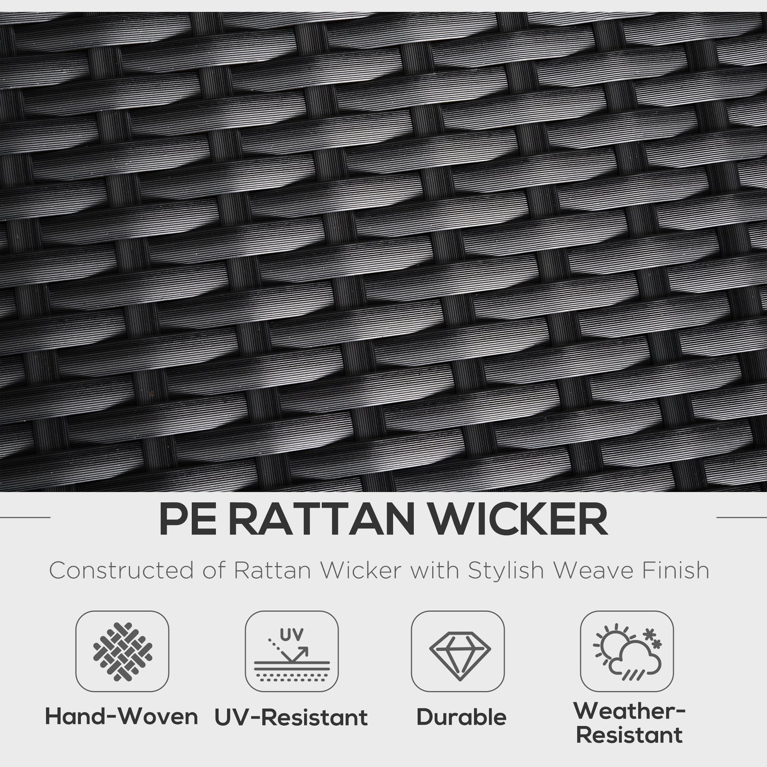 This Outsunny six-piece set is the ultimate for satisfying relaxation in your garden. Using powder coated steel for a robust and sturdy frame, each piece is wrapped in plastic wicker: protects against mild weather-damage and creates a stylish look. Both armchairs feature a 90°-130° reclining back, complete with thick padded cushions.