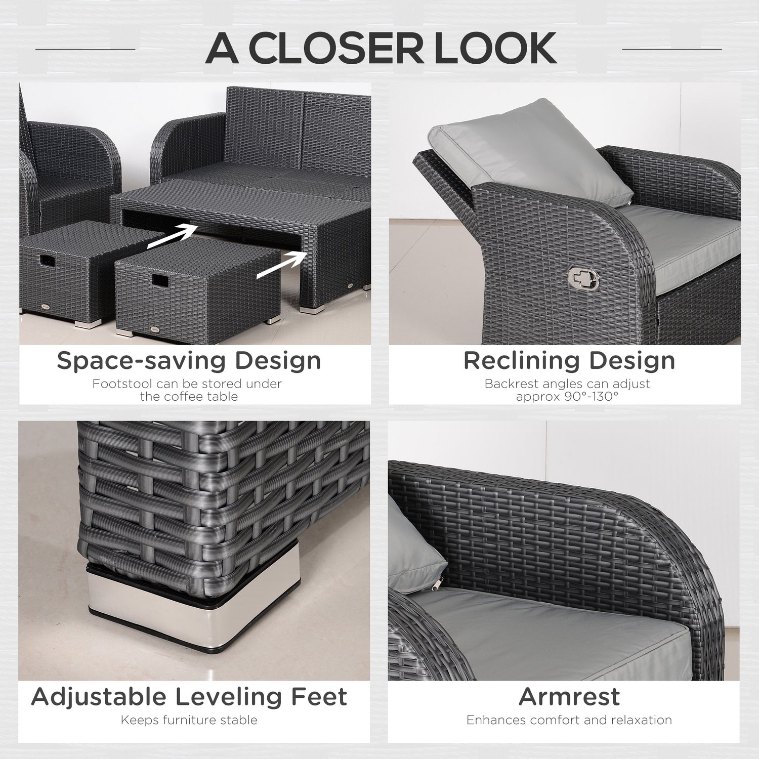 Outsunny 7-Seater Outdoor Garden Rattan Furniture Set w/ Recliners Grey