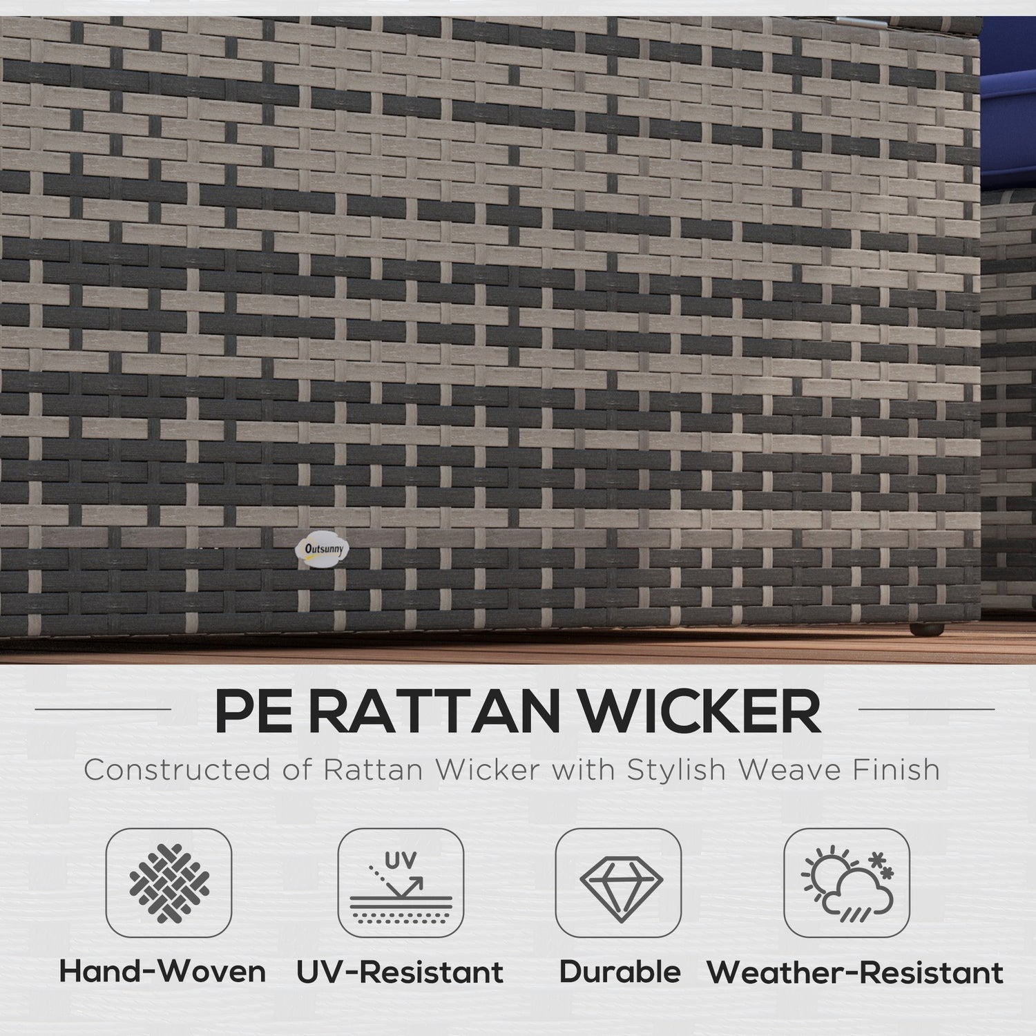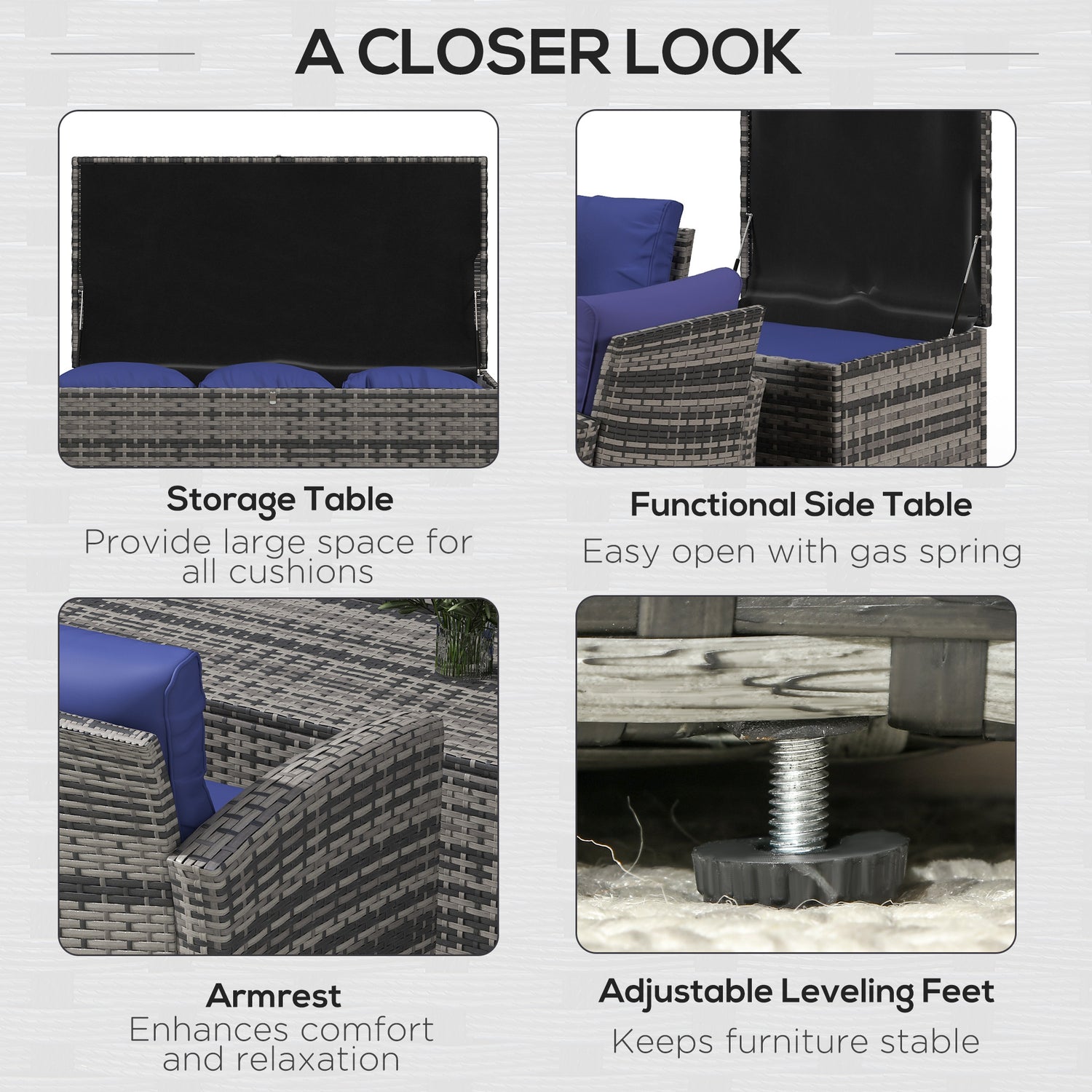 Outsunny 7-Seater Rattan Garden Furniture Set, Wicker Sofa with Storage Tea & Side Tables, Navy Blue