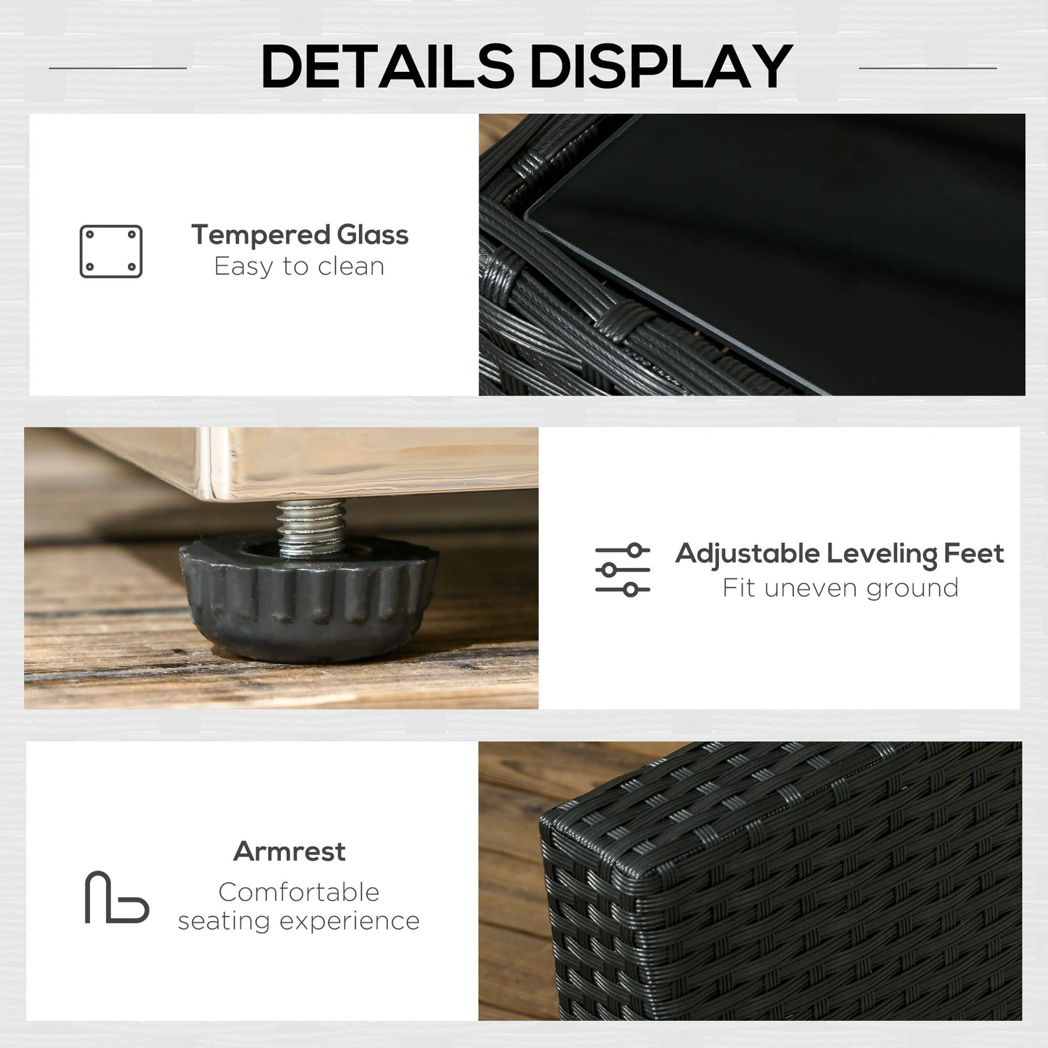 Outsunny 8 Pieces PE Rattan Corner Sofa Set, Outdoor Garden Furniture Set, Patio Wicker Sofa Seater w/ Cushion, Washable Cushion Cover & Tempered Glass Table, Black