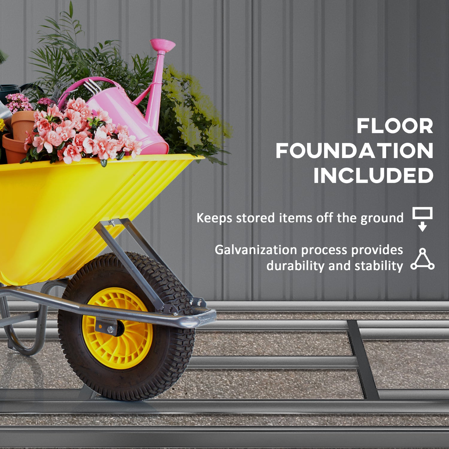 Keep your garden equipment and outdoor essentials locked away securely with this metal shed from Outsunny. Built from galvanised steel for strength, it comes with a lockable double sliding door on the front for easy access and four vents for air to circulate and prevent moisture buildup. The garden tool shed is finished with a protective weather coating and a foundation kit for it to stand level on the ground.