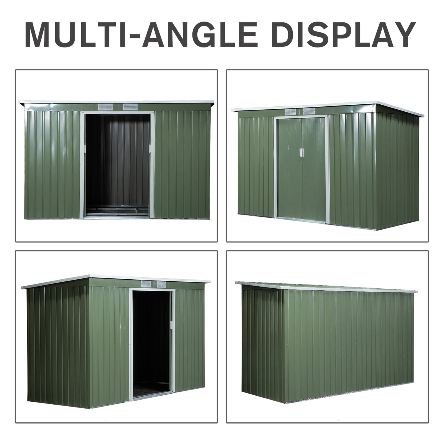 Outsunny 9ft x 4.25ft Corrugated Garden Metal Storage Shed Outdoor Equipment Tool Box with Foundation Ventilation & Doors Light Green