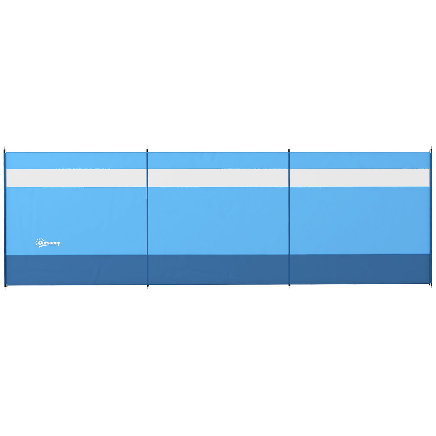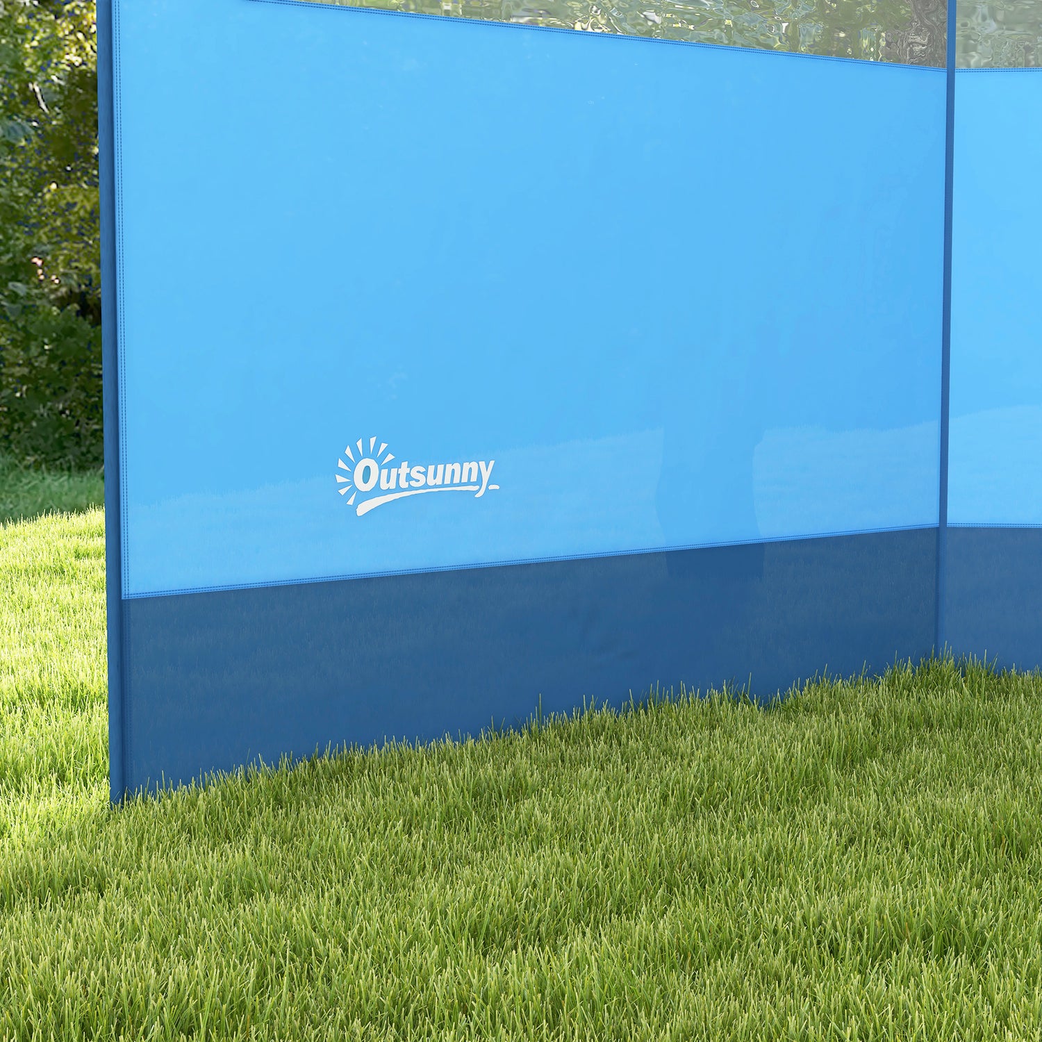 Outsunny Camping Windbreaker with Clear Windows, Carry Bag and Steel Poles, for Beach Caravan Campervan, 440 x 140cm, Blue