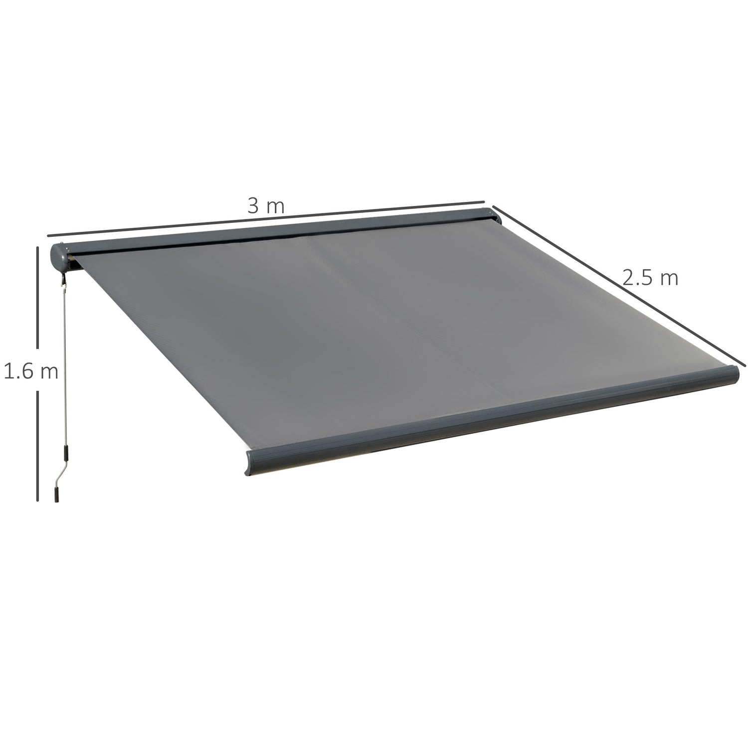 Outsunny Cassette Electric Motorised Manual Awning Door Window Patio Canopy Retractable Sun Shade w/ R/C, 300x250cm Grey 3m