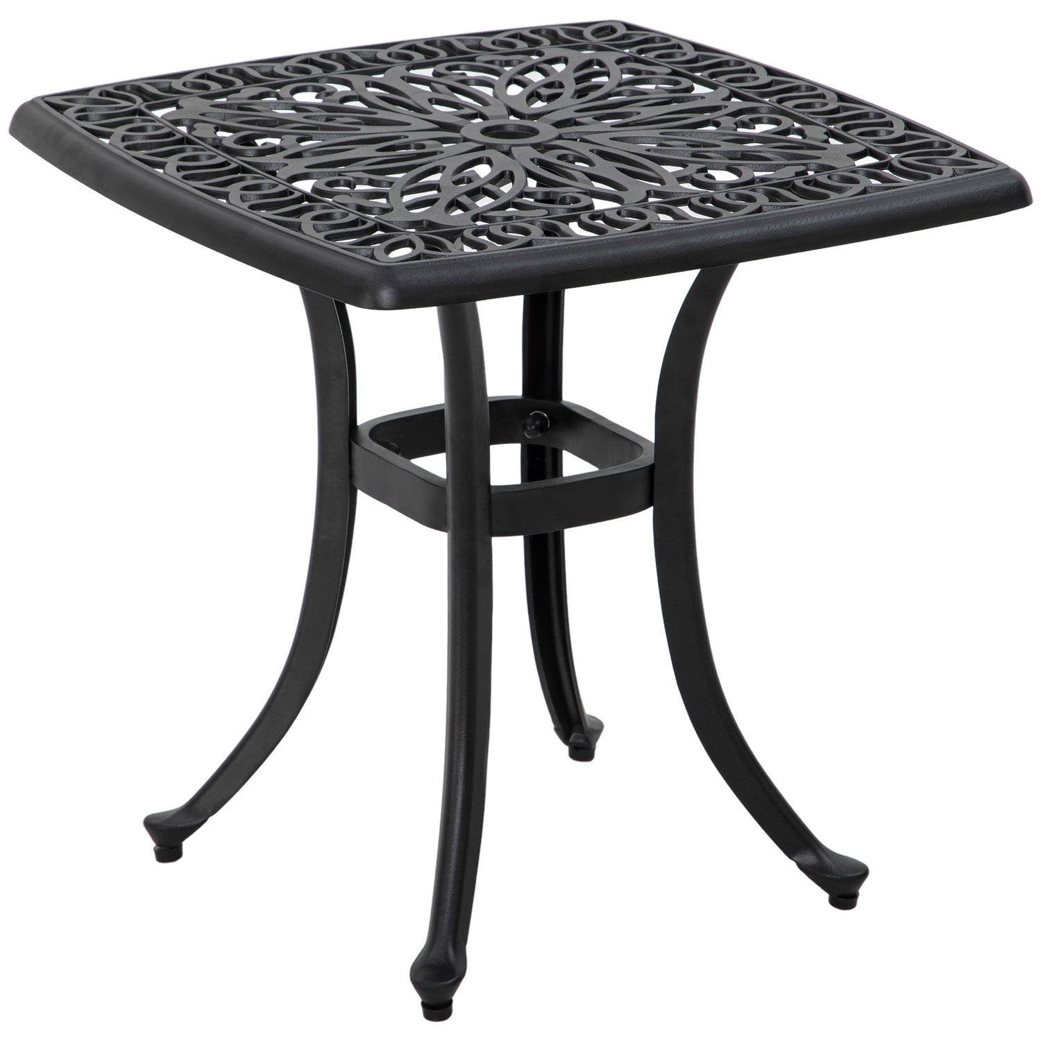 Outsunny Cast Aluminium Bistro Table, Outdoor Square Side Table with Umbrella Hole, Garden Table for Balcony, Poolside, Black