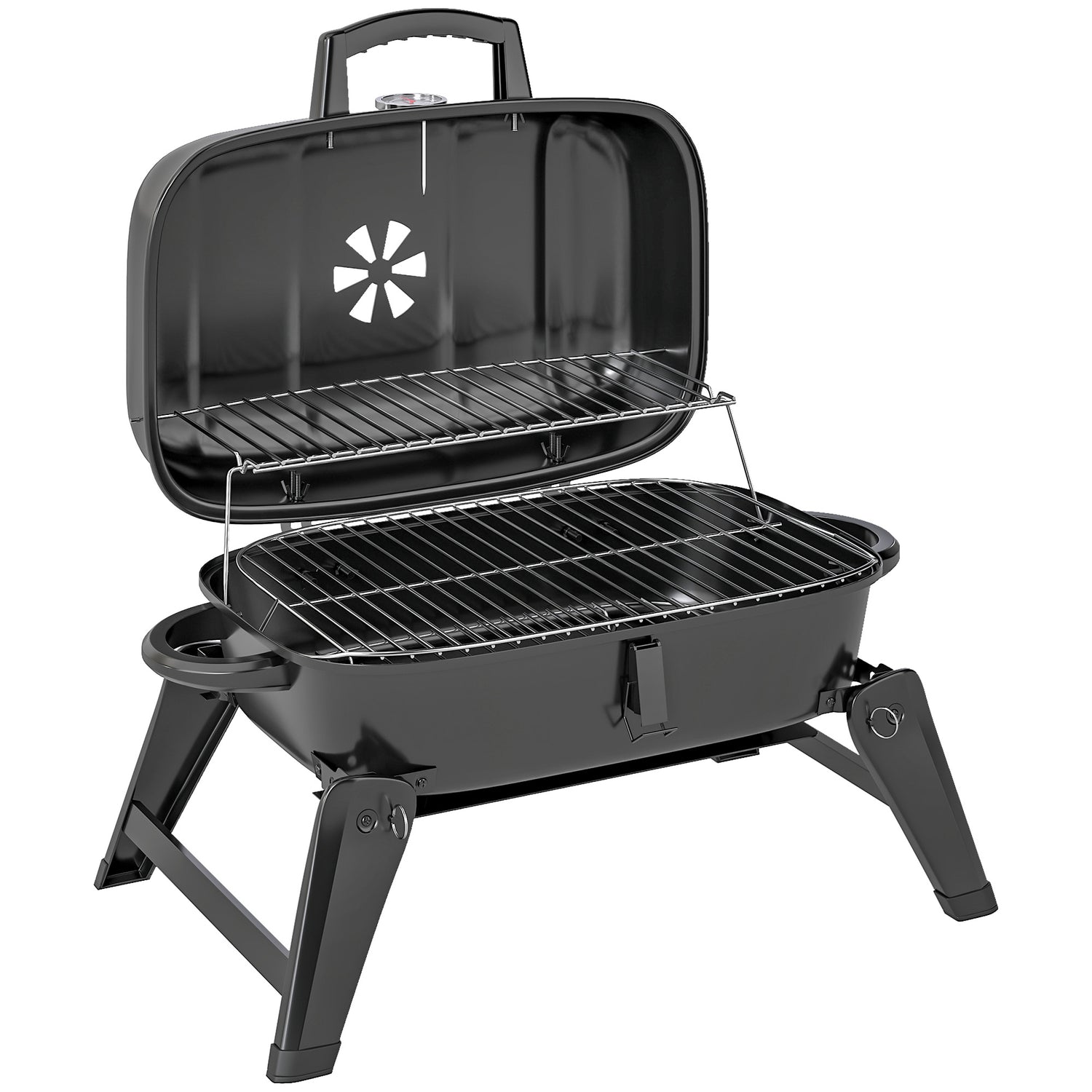 Outsunny Charcoal Barbecue Grill Folding BBQ Grill with 1232 cm² Cooking Area, Adjustable Vent, Thermometer, Handles for Camping Picnic, Black