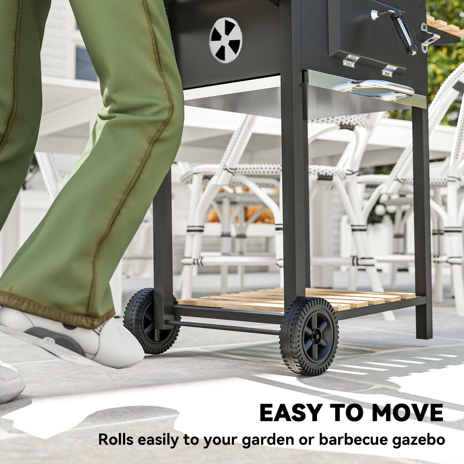 - Convenient BBQ: Features two side shelves and a bottom shelf for storage, keeping all essentials close on a freestanding barbecue. Along with a front opening for easy charcoal addition, simplifying your BBQ grill experience