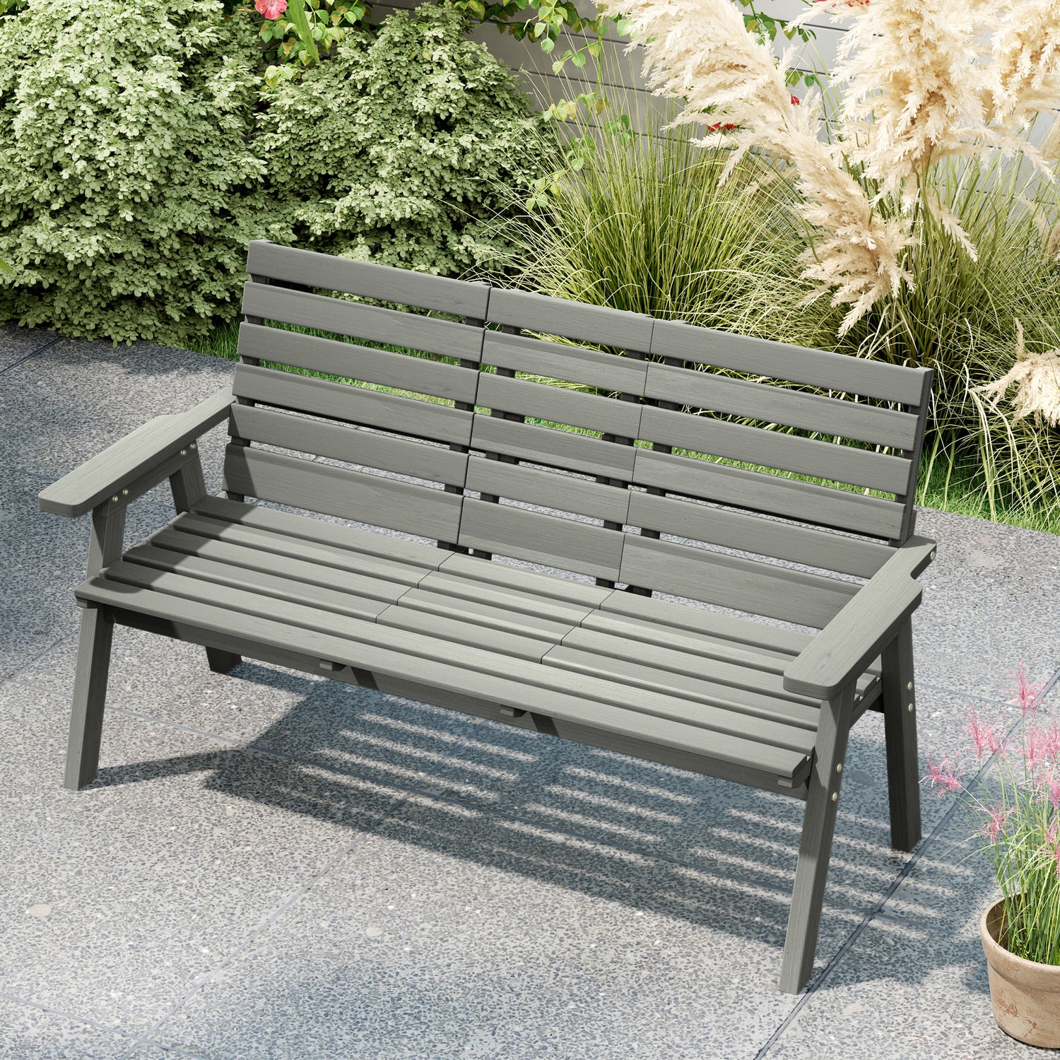 Outsunny Fir Wood Convertible 2 to 3 Seater Outdoor Garden Bench Grey