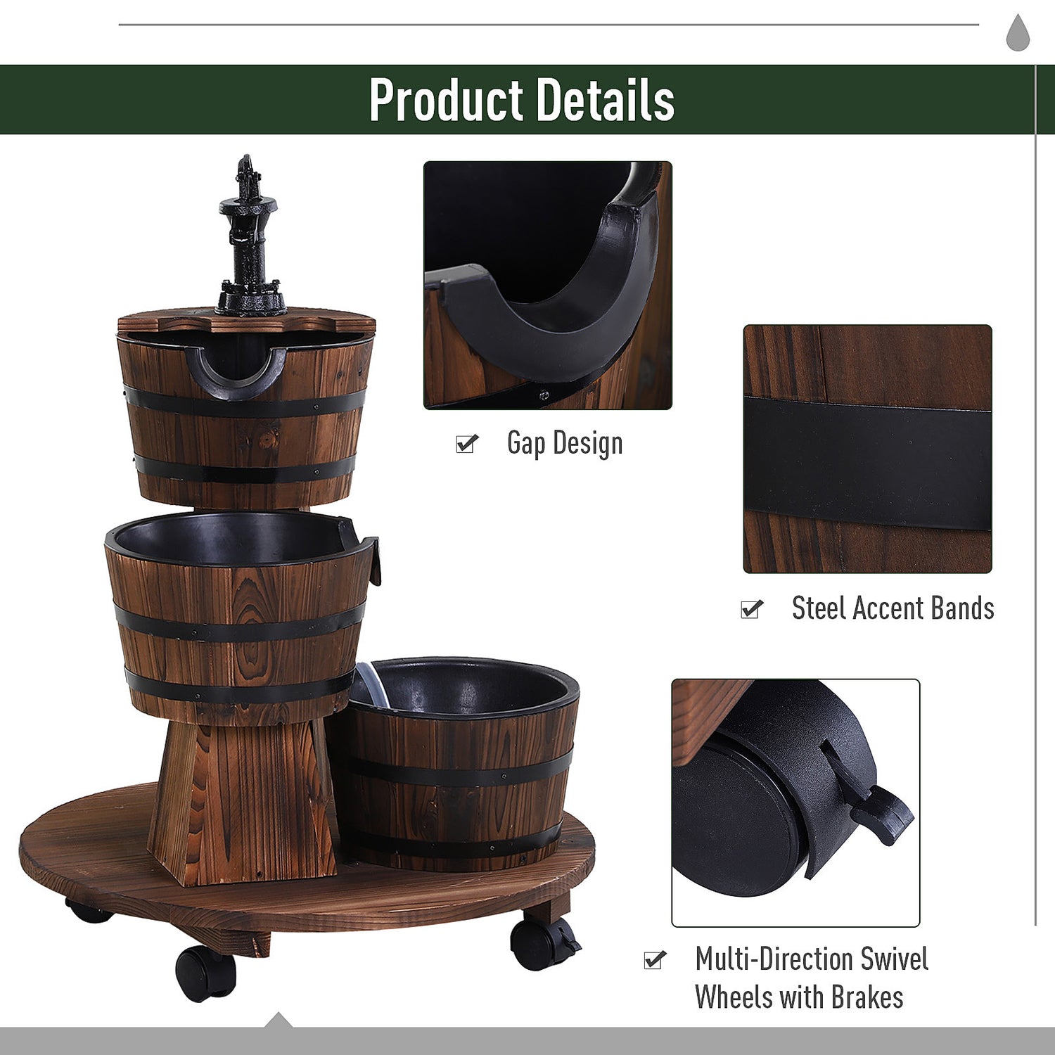 Outsunny Wooden Garden Wishing Well Fountain Barrel Waterfall Rustic Wood with Pump Garden Décor Ornament